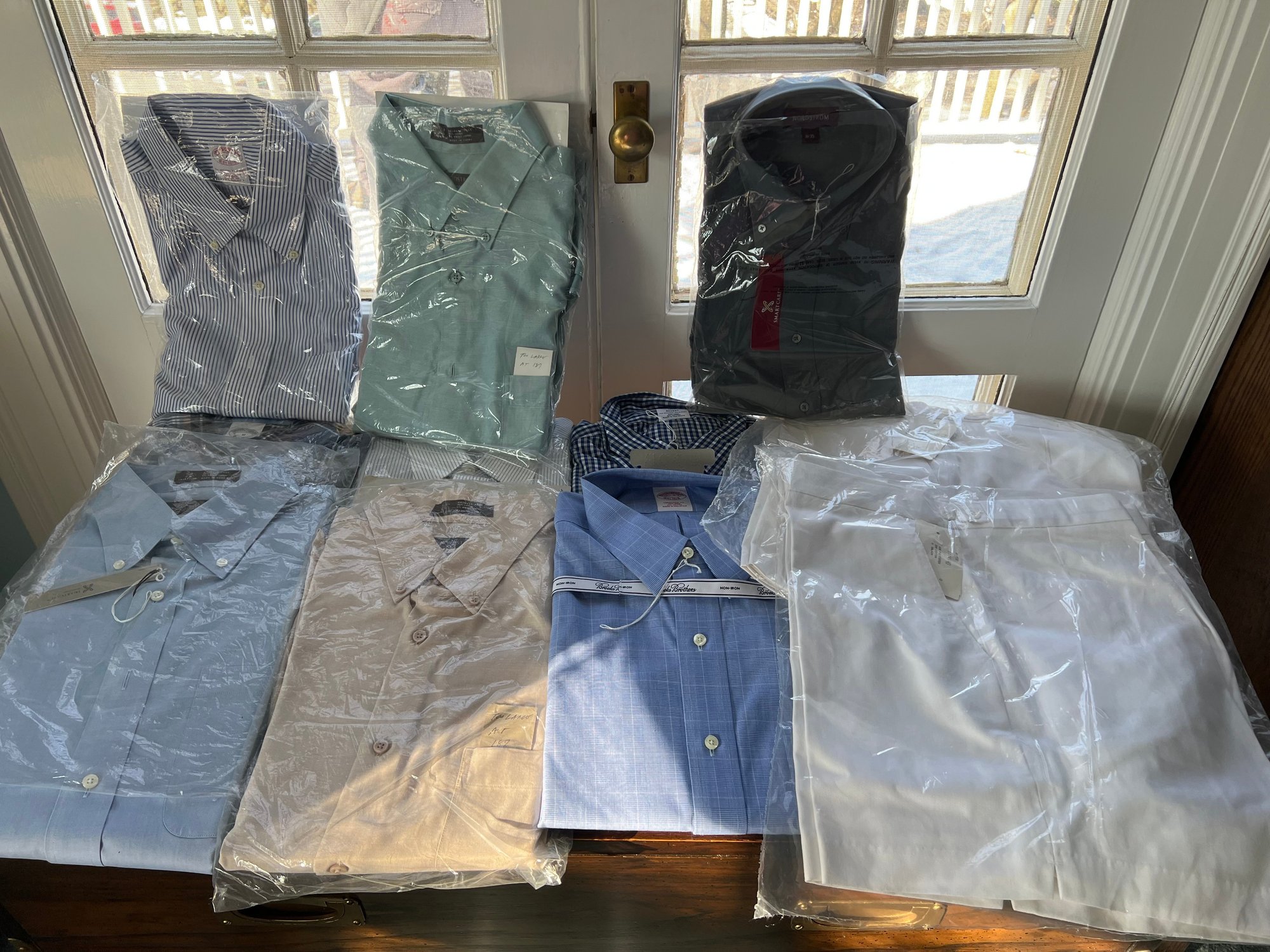 9-Large Button Down Shirts And 2 Size 40 Shorts: Hathaway, Van Heusen, Centura, Brooks Brothers, &Nordstroms