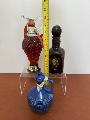 A Collection Of Three Decorative Wine And Spirit Bottles, Including A Grape Decanter And A Port Jug.