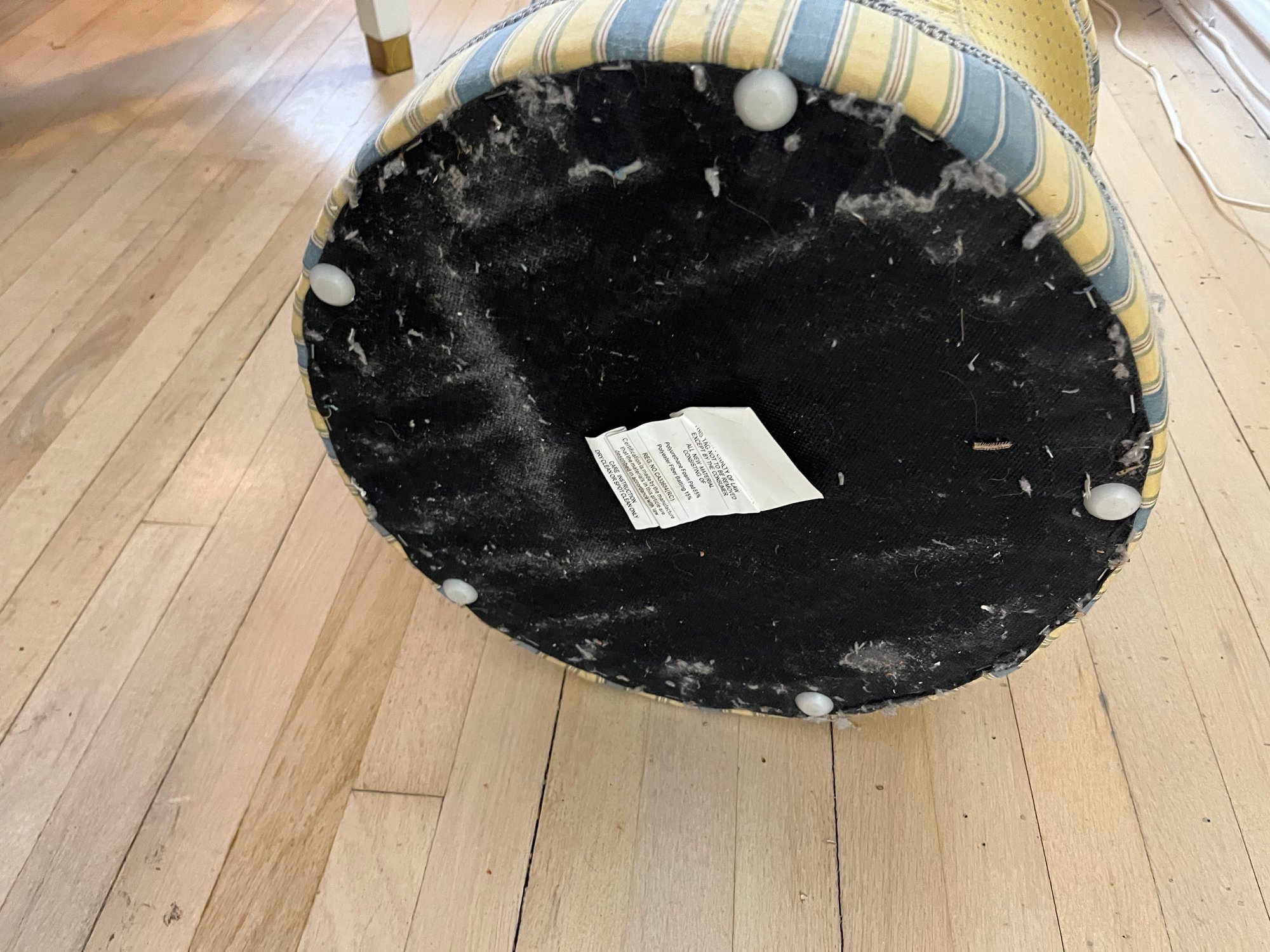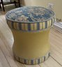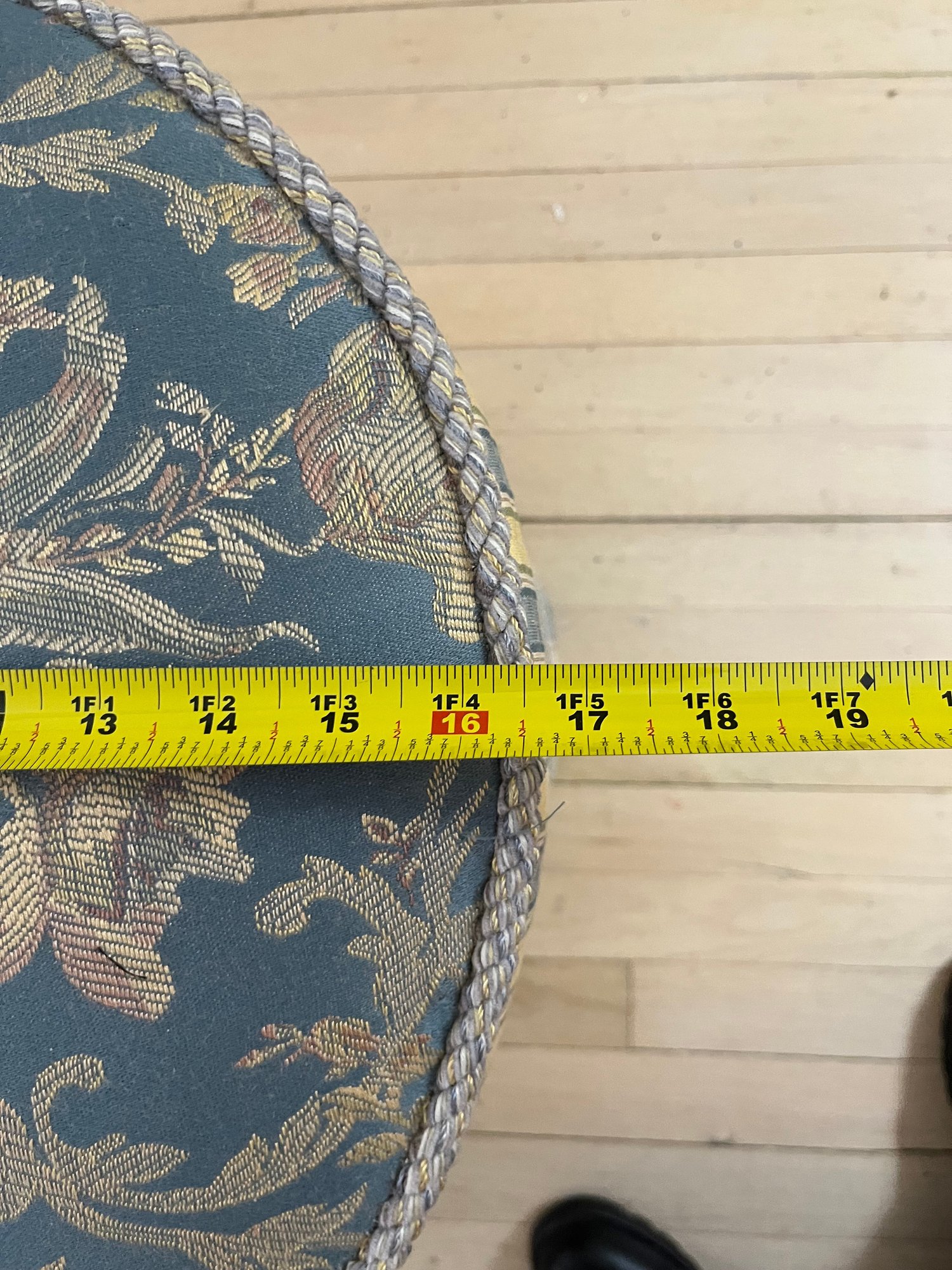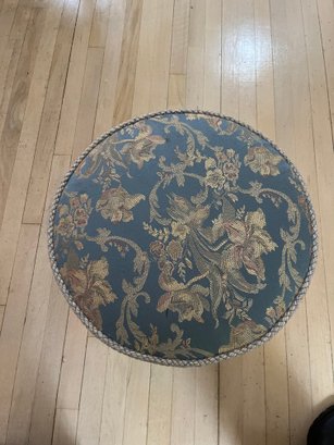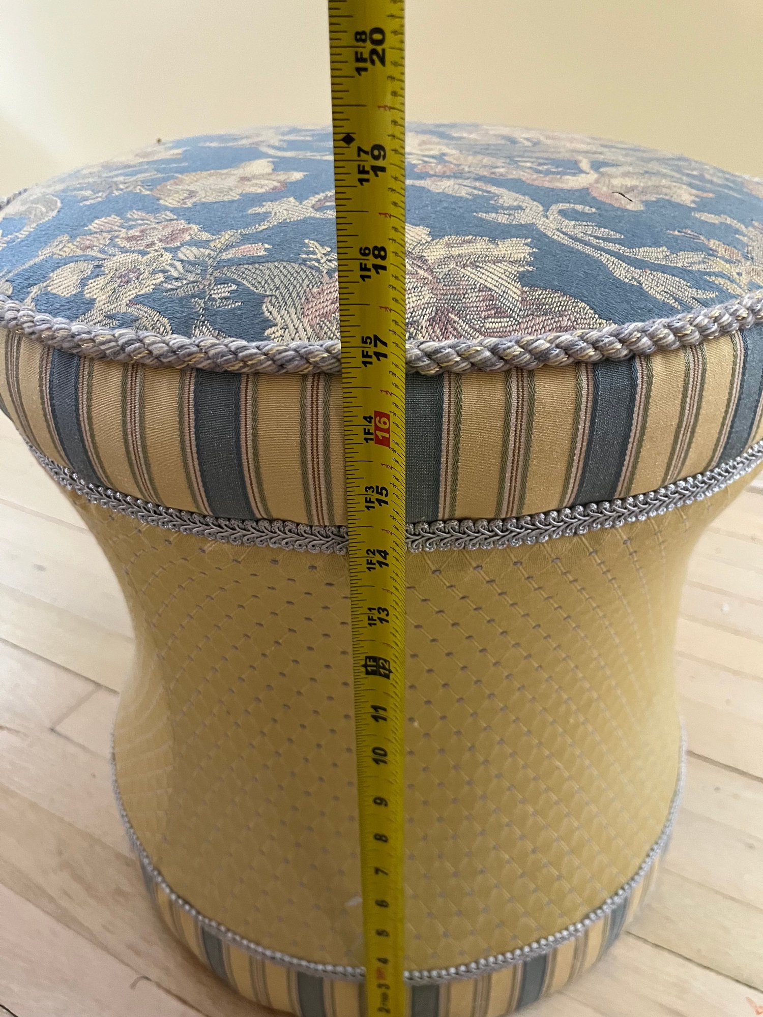 A Contemporary Upholstered Ottoman With Floral And Striped Fabric