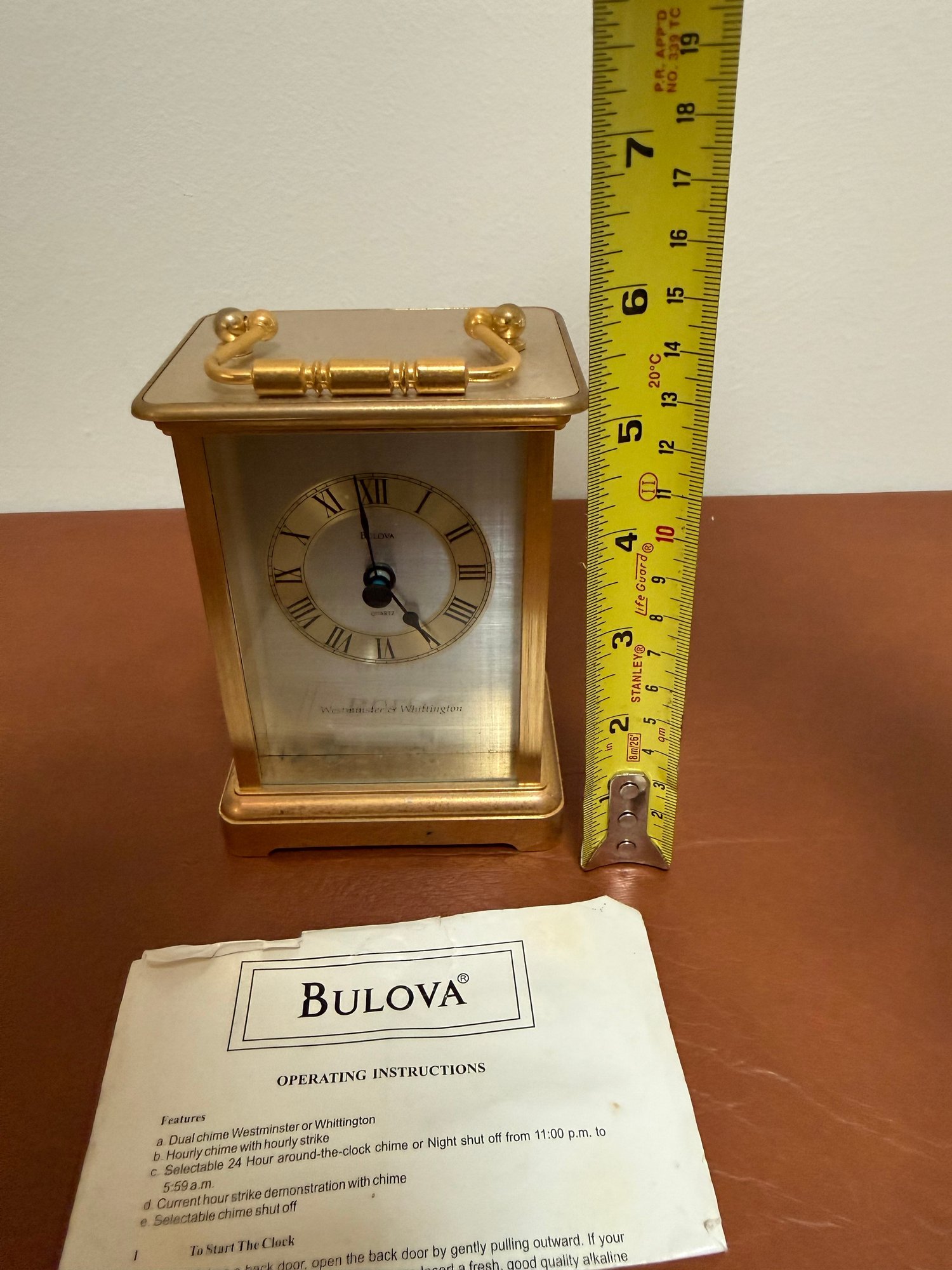 A Gold-toned Bulova Quartz Mantel Clock With Westminster & Whittington Chime
