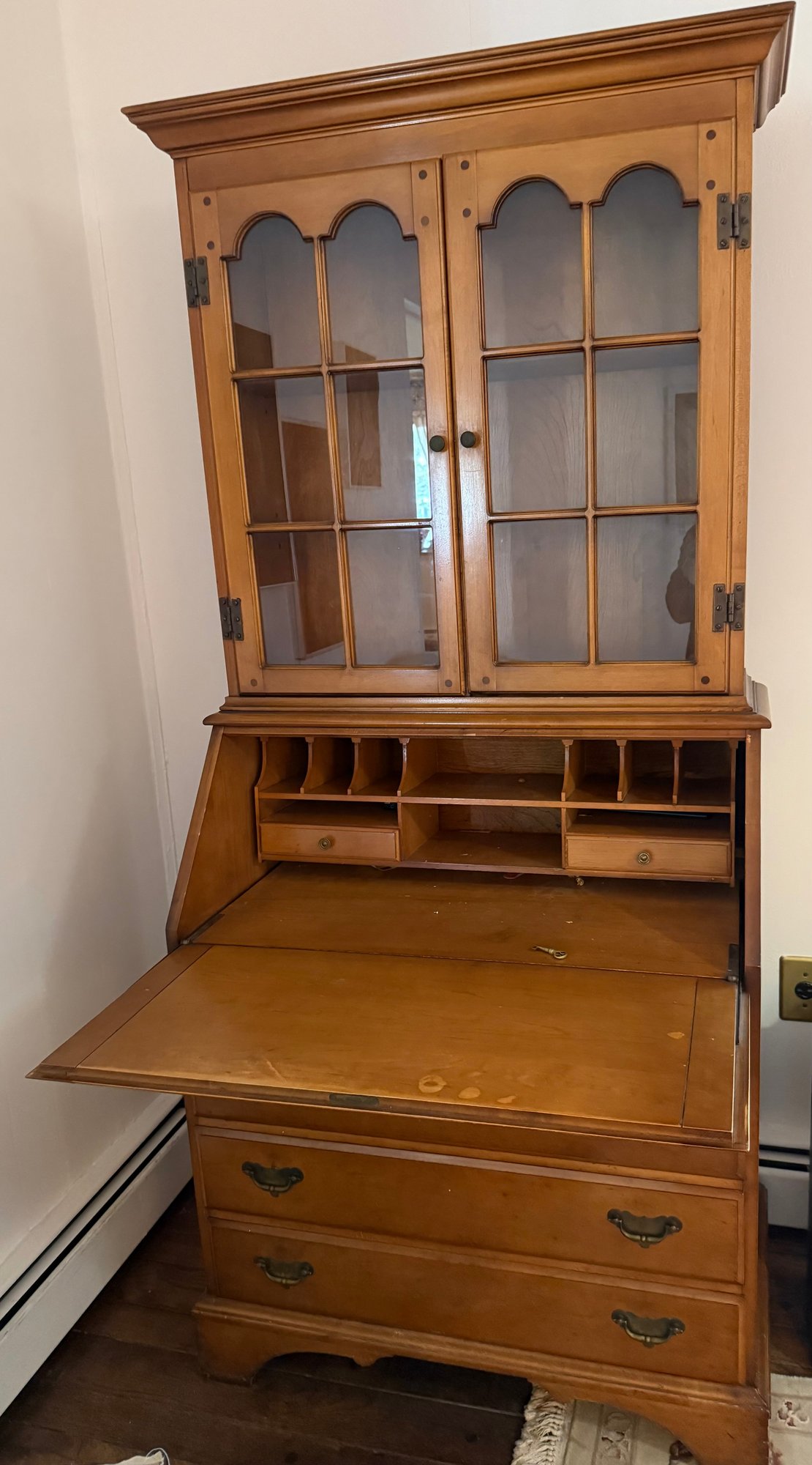 A Mid-20th Century American Maple Secretary Desk With A Hutch