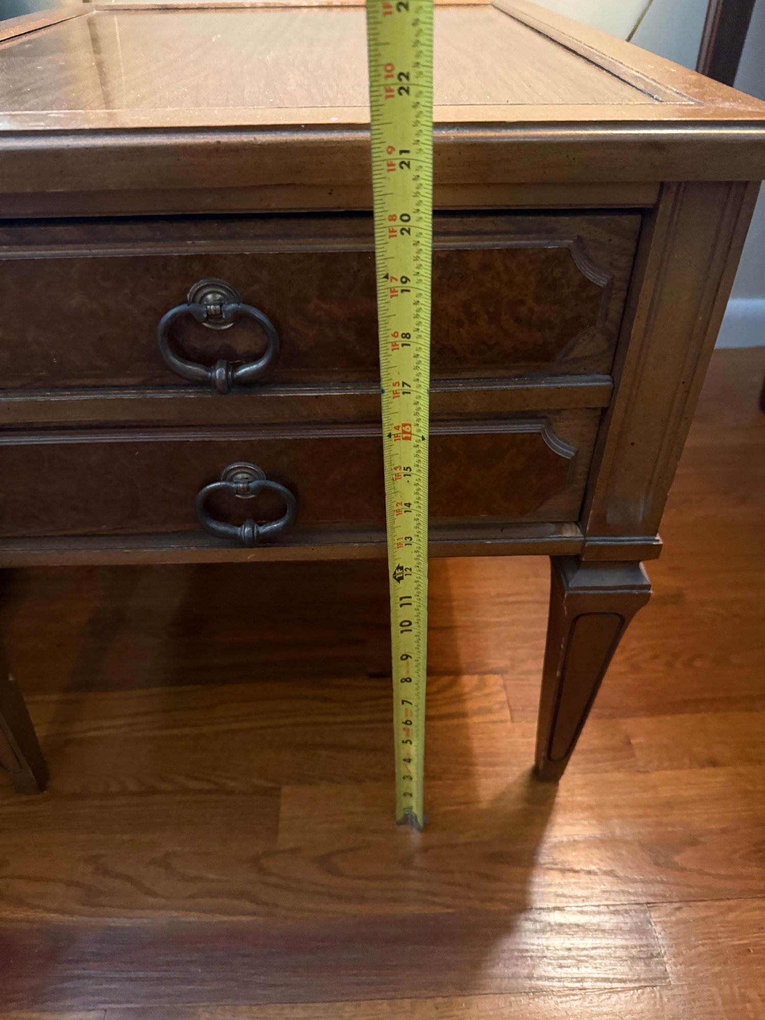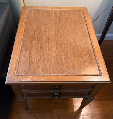 A Mid-century Modern Burl Wood Veneer Two-drawer End Table
