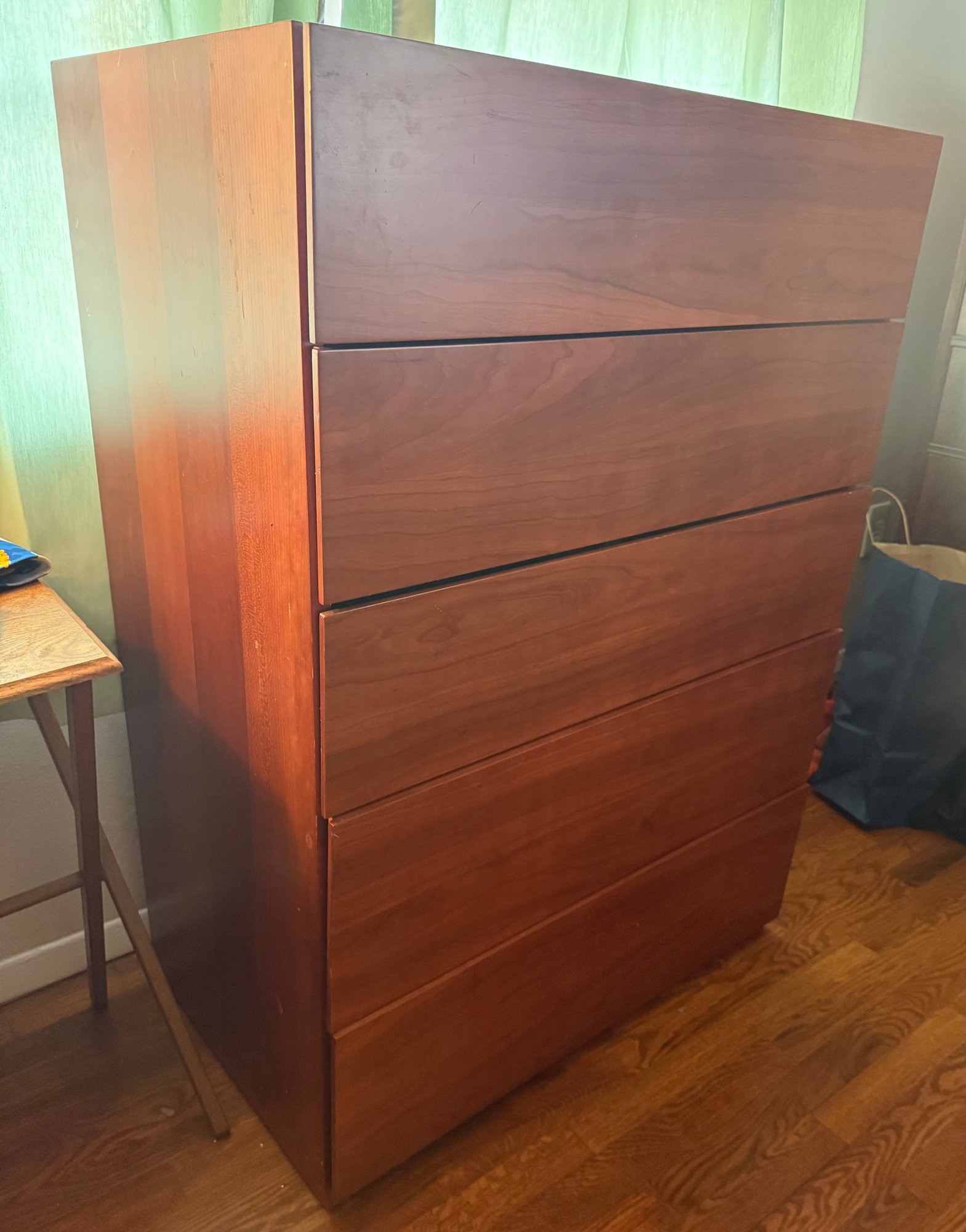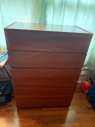 A Modern Five-drawer Wooden Dresser With Integrated Drawer Pulls
