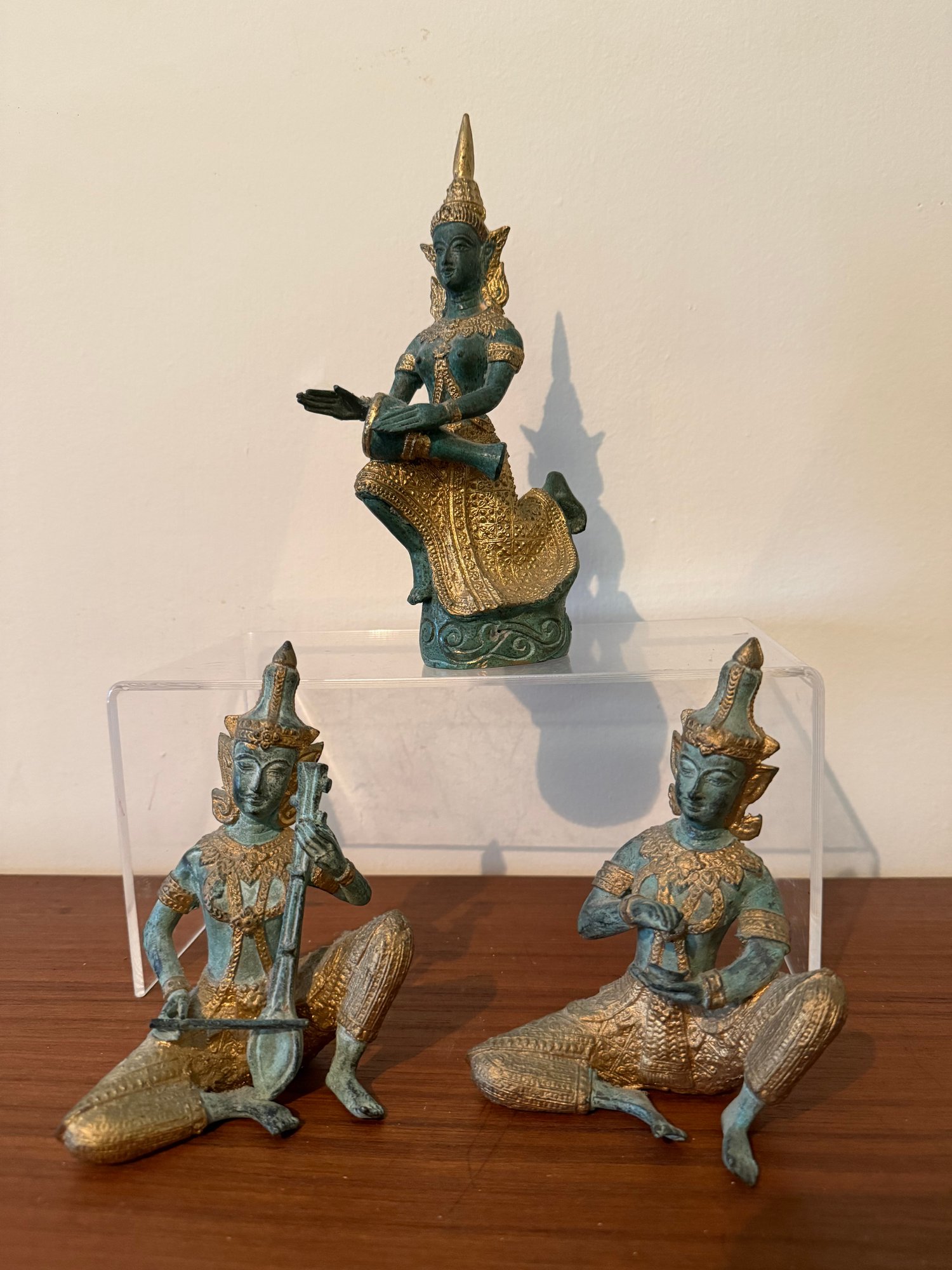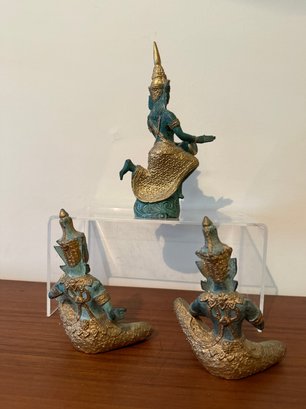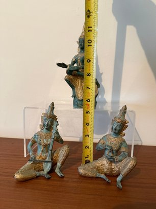 A Set Of Three Vintage Thai Bronze Figurines Of Musicians And Dancers