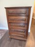 A Vintage Wooden Dresser With Five Drawers And Brass Pull Handles