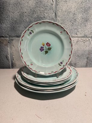 Adams China Allegro Pattern Ironstone Plates With Floral Decoration