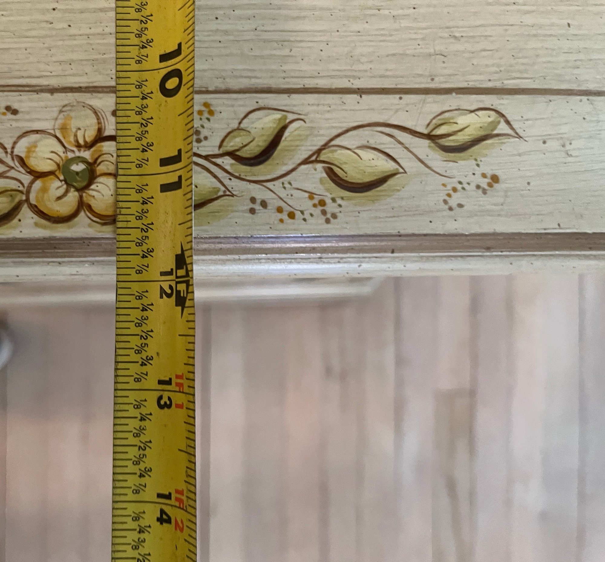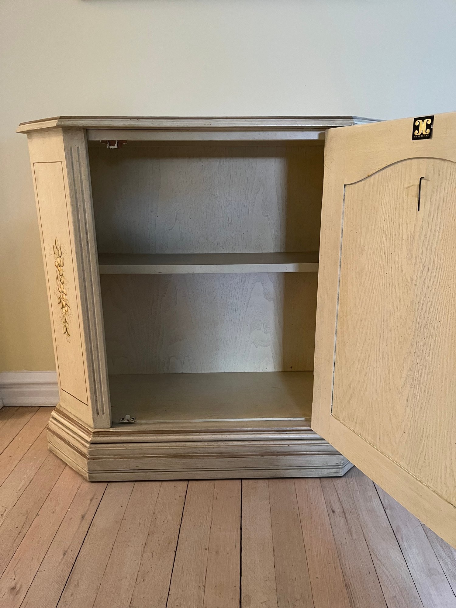Painted And Distressed Decorative Corner Cabinet With Floral Motifs.