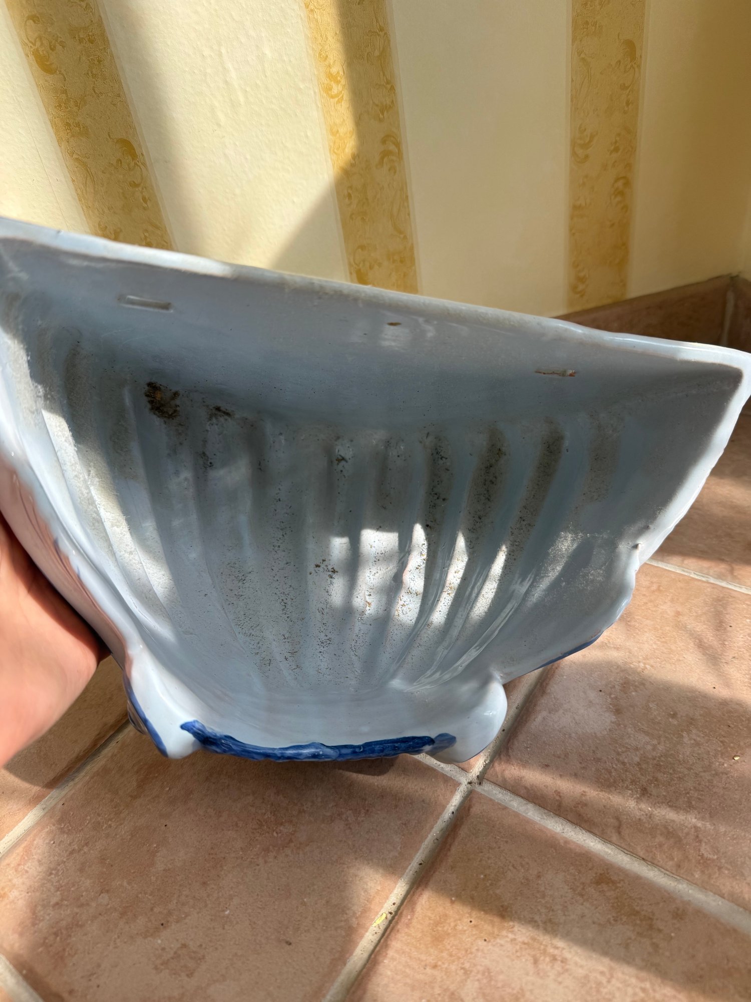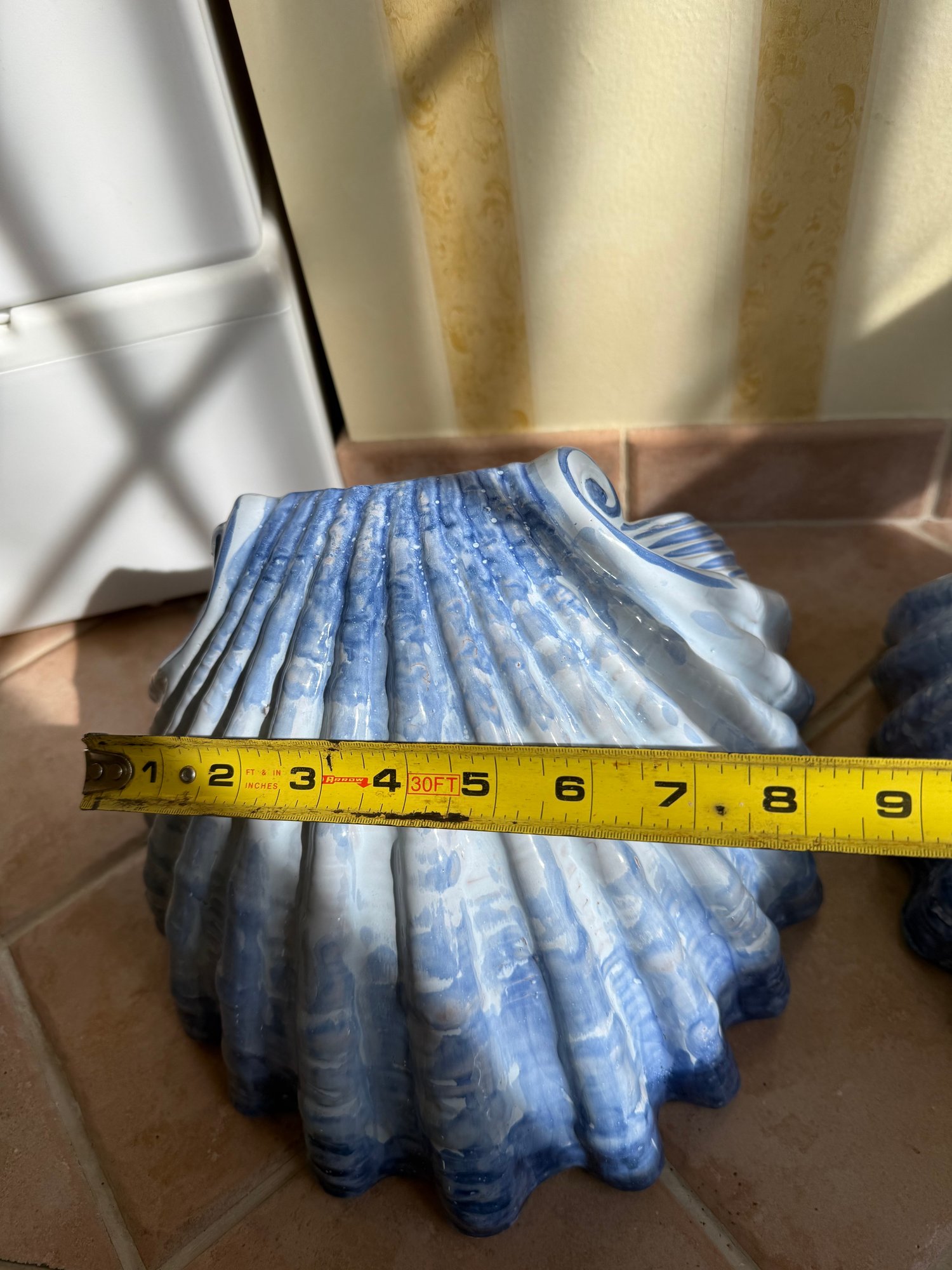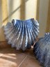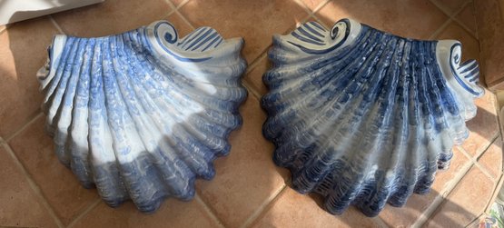Pair Of Blue And White Glazed Ceramic Scallop Shell Decorative Objects