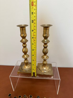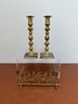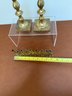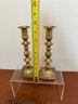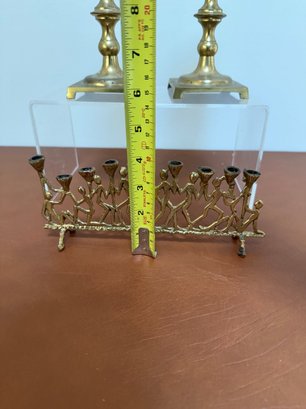 Pair Of Brass Candlesticks And A Modernist Brass Menorah With Figures