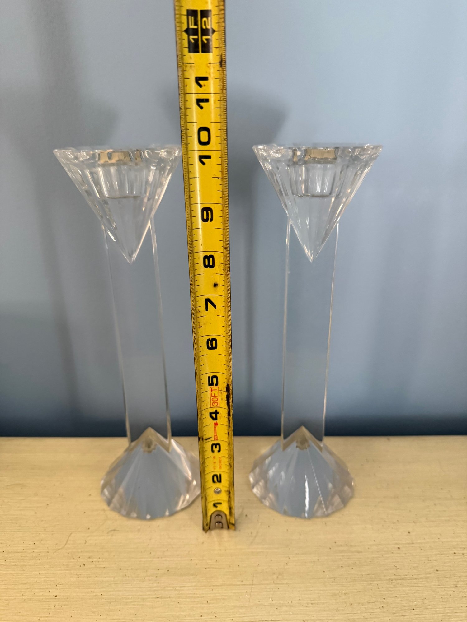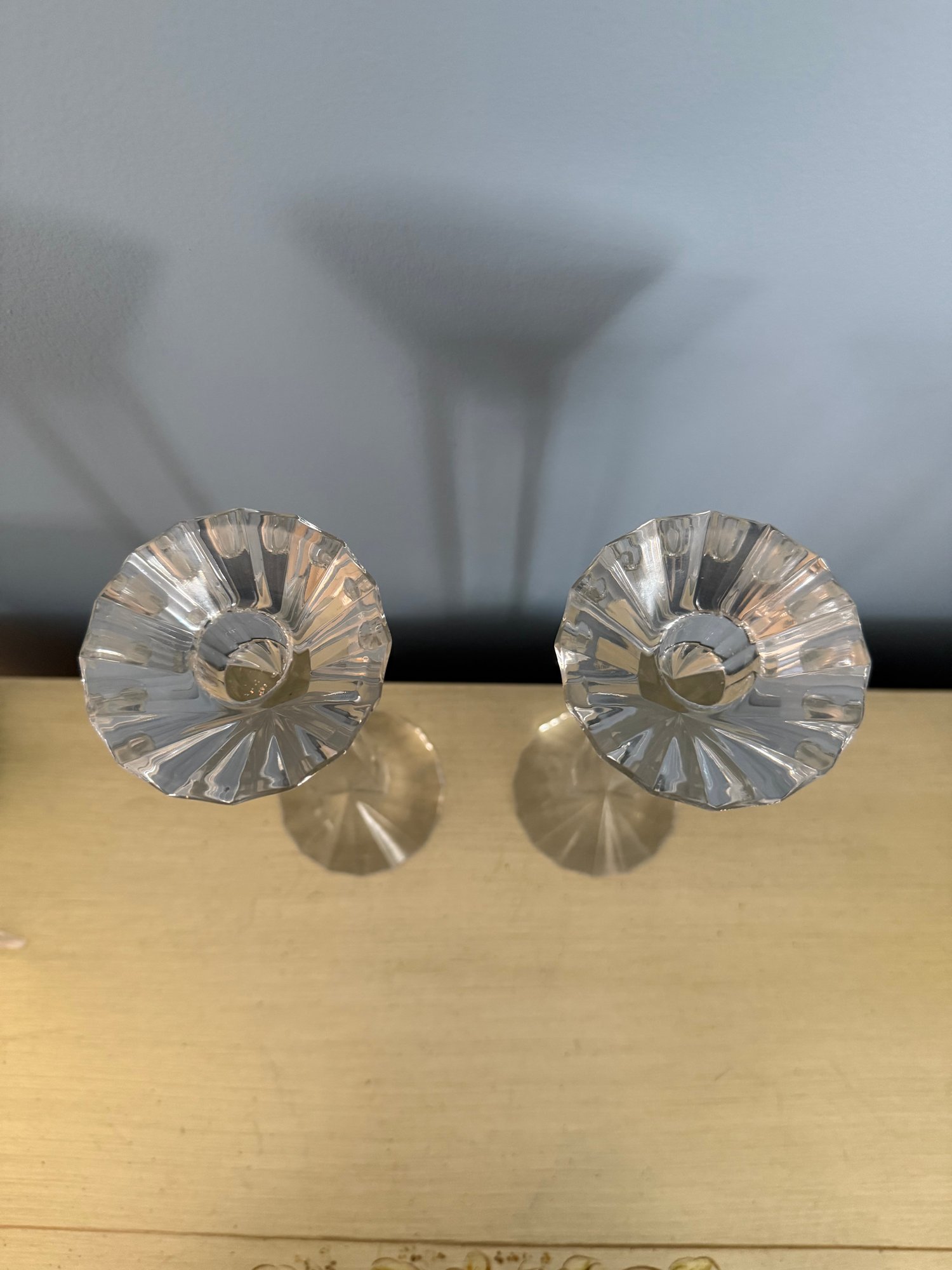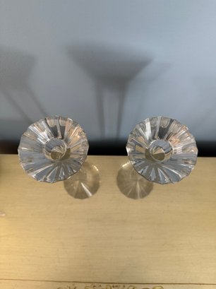 Pair Of Faceted Bohemian Crystal Candlesticks With Slender Stems
