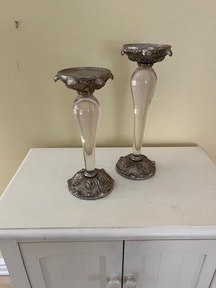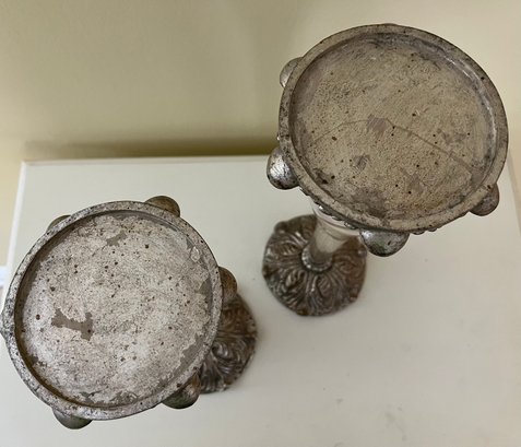 Pair Of Victorian-style Silver-plated And Frosted Glass Pedestals