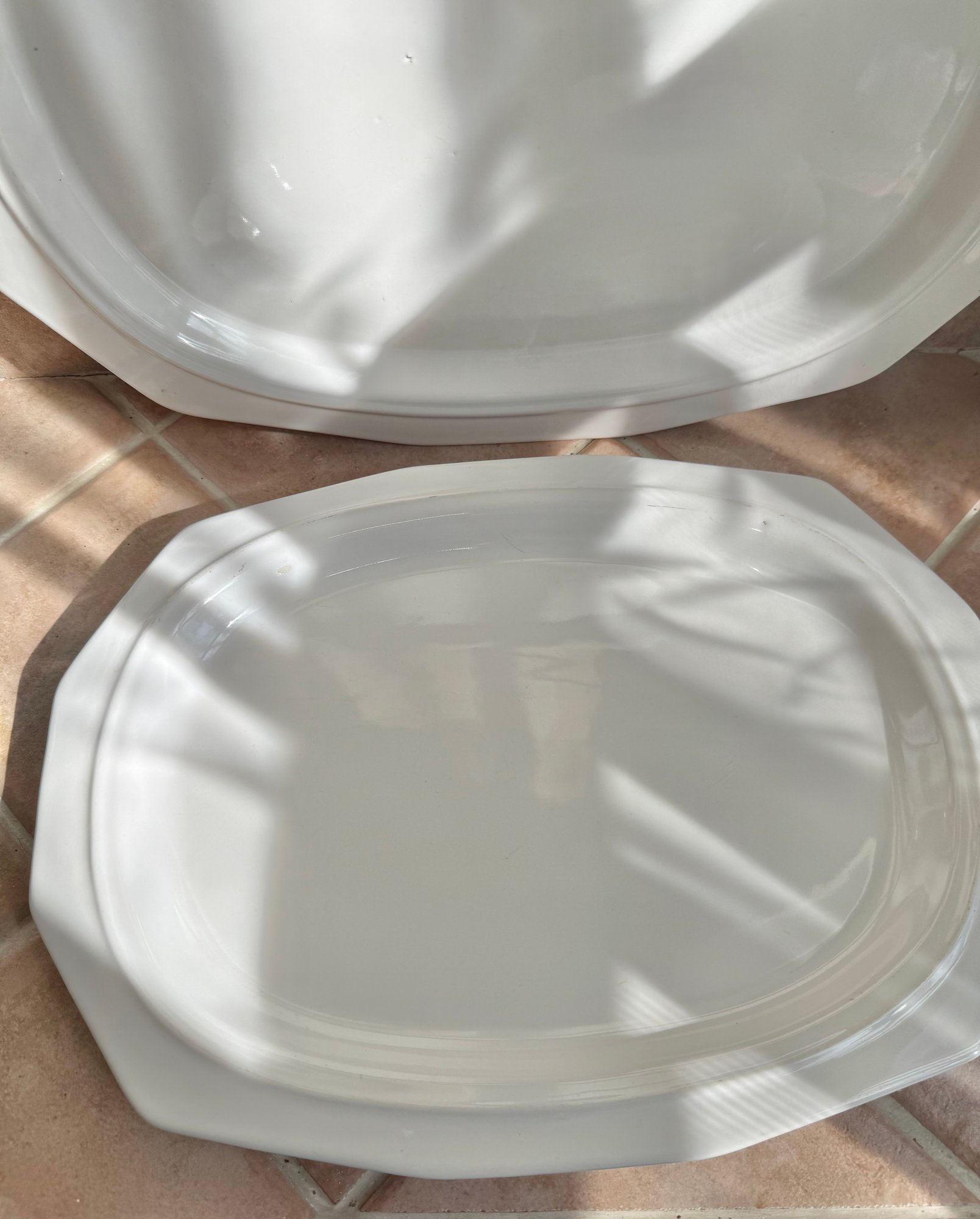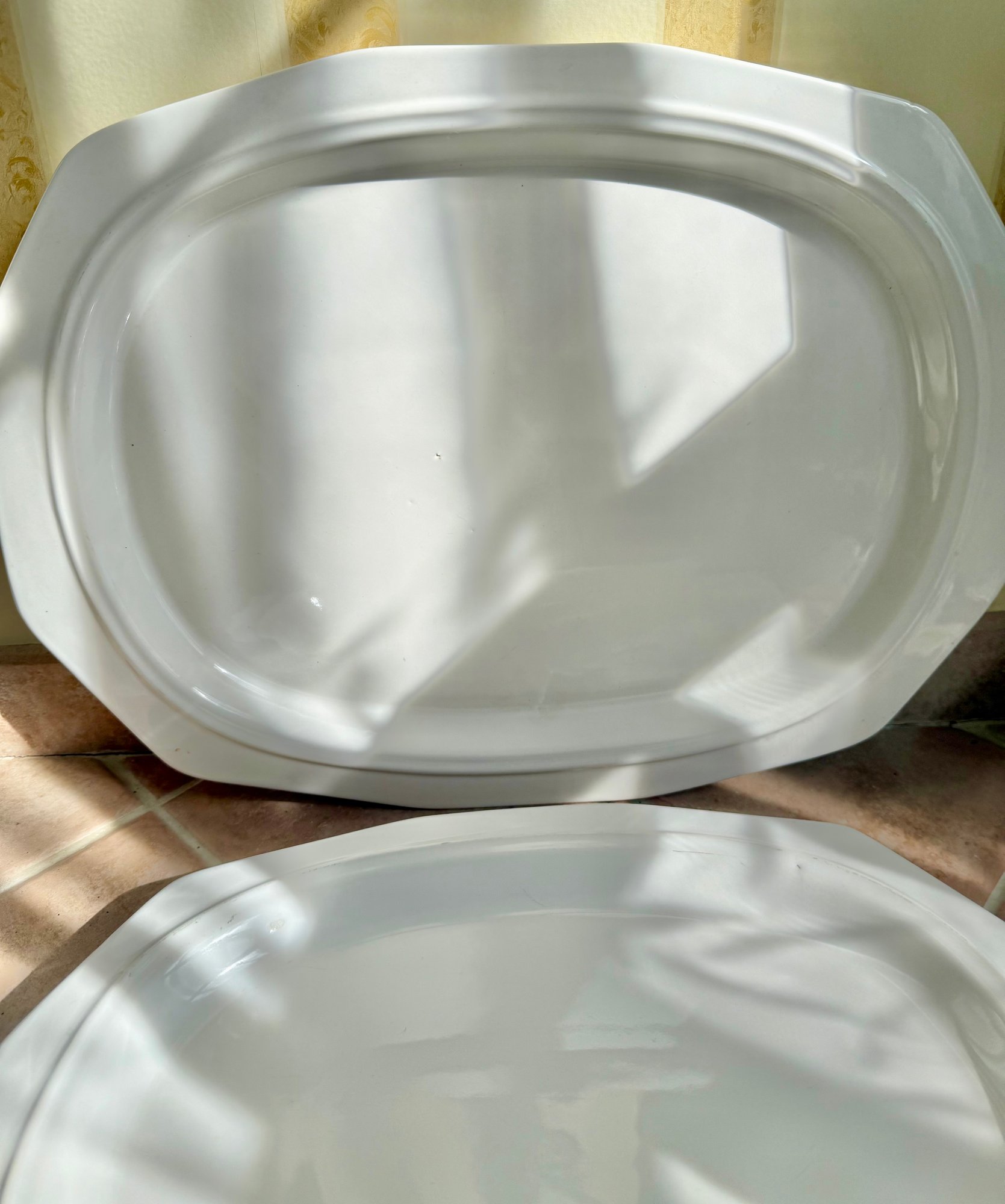 Pair Of White Pfaltzgraff Heritage Ironstone Oval Serving Platters