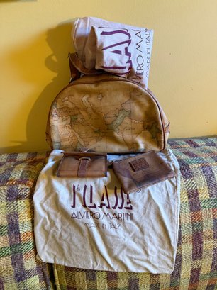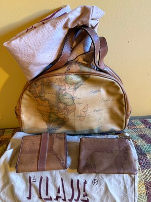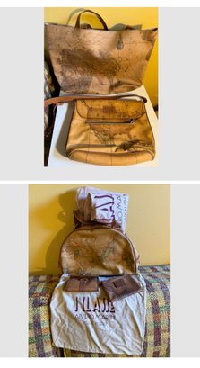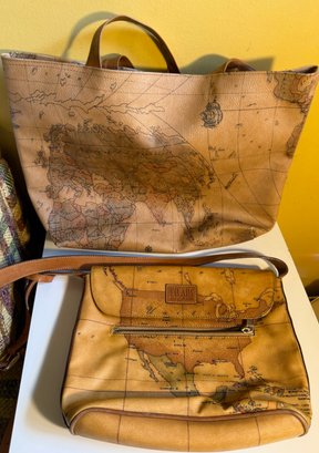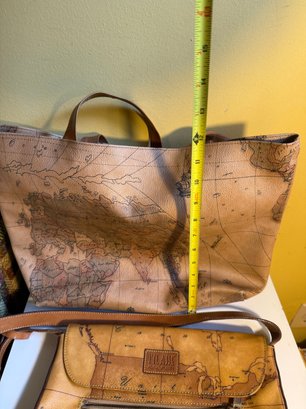 Alviero Martini Geo Classic Map Print Leather Handbag Set And One Old World Tote No Name
