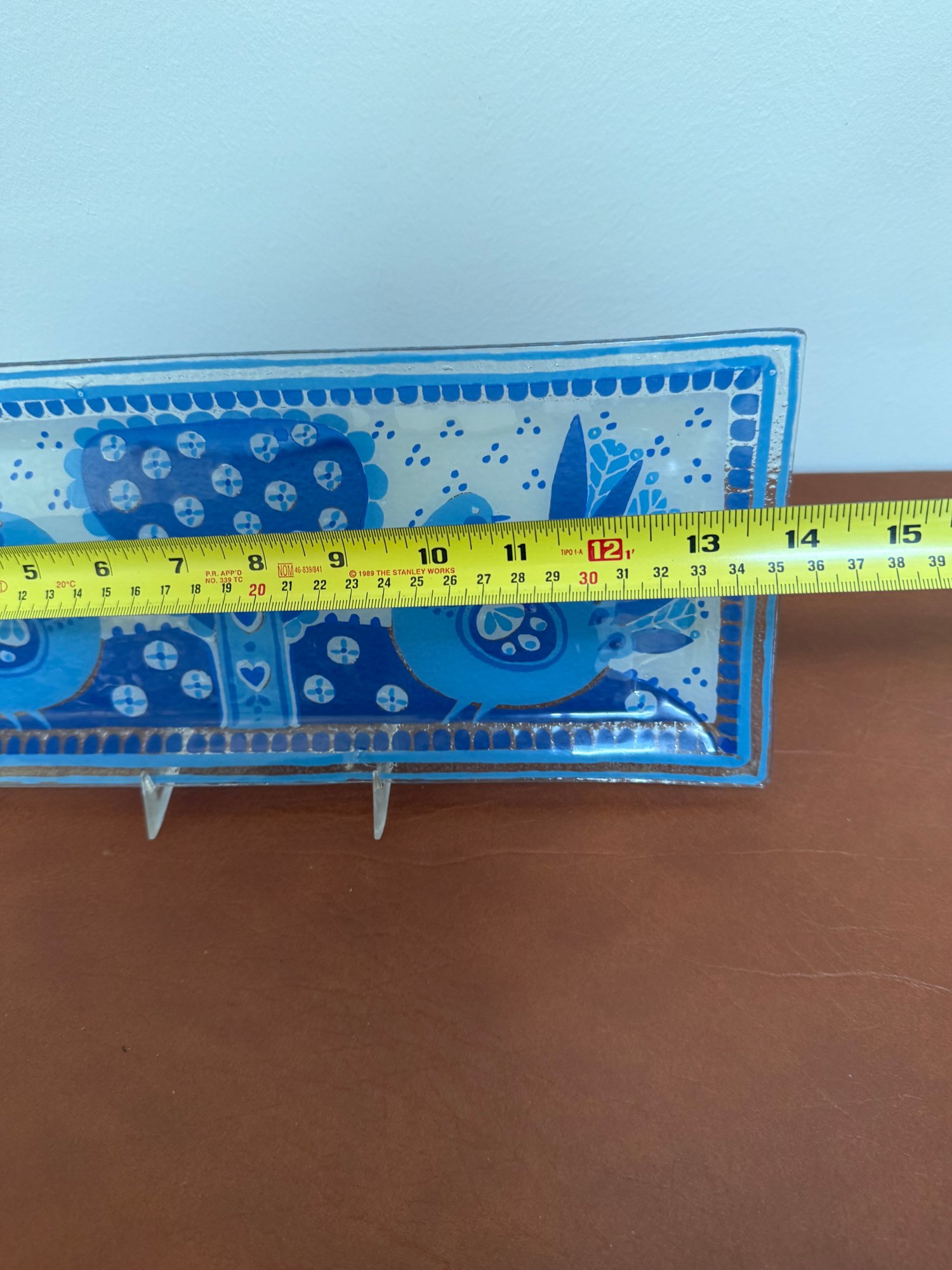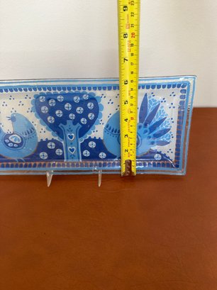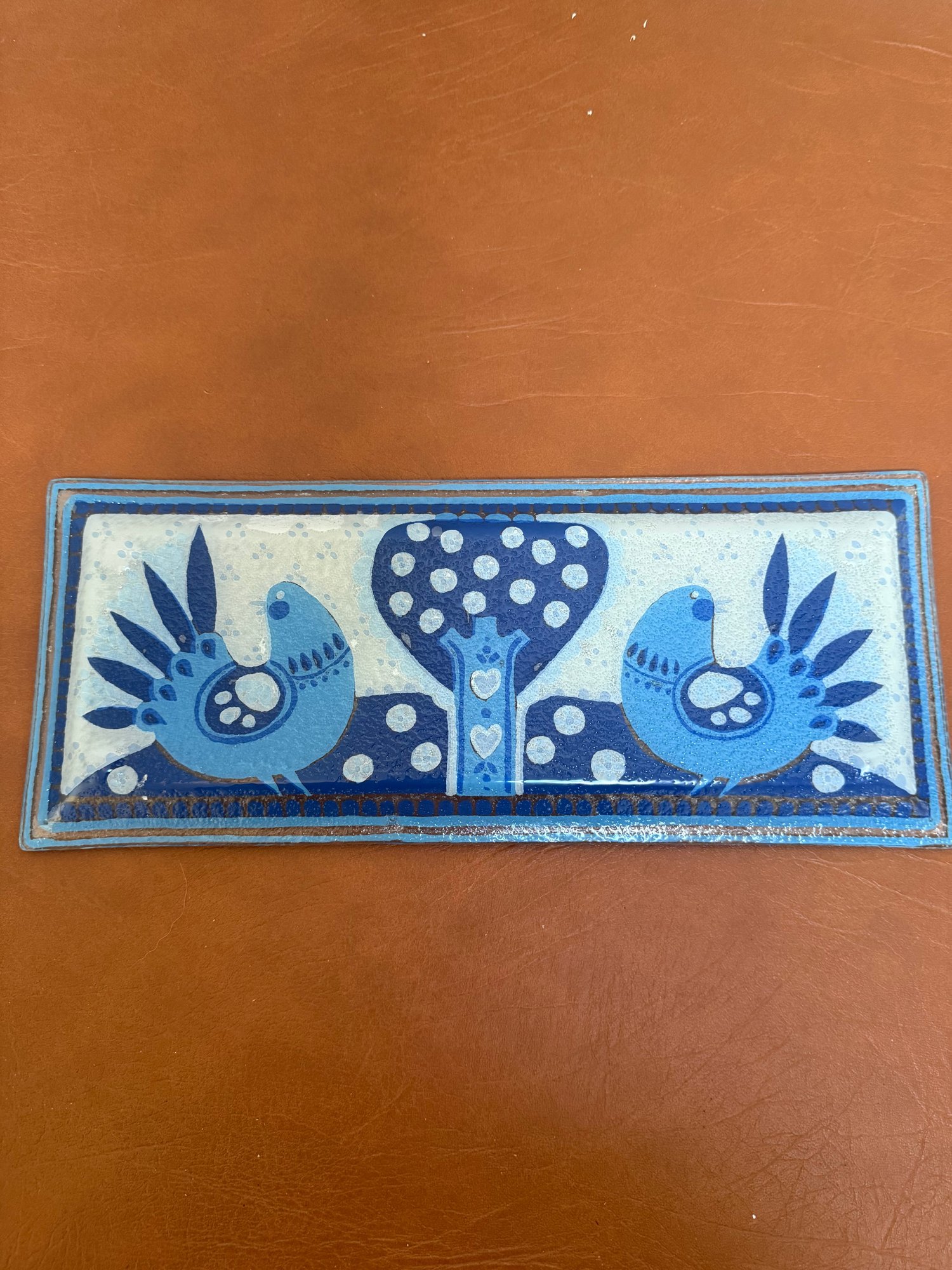 Andreas Meyer Art Glass Dish With Folk Art Birds And Tree Motif