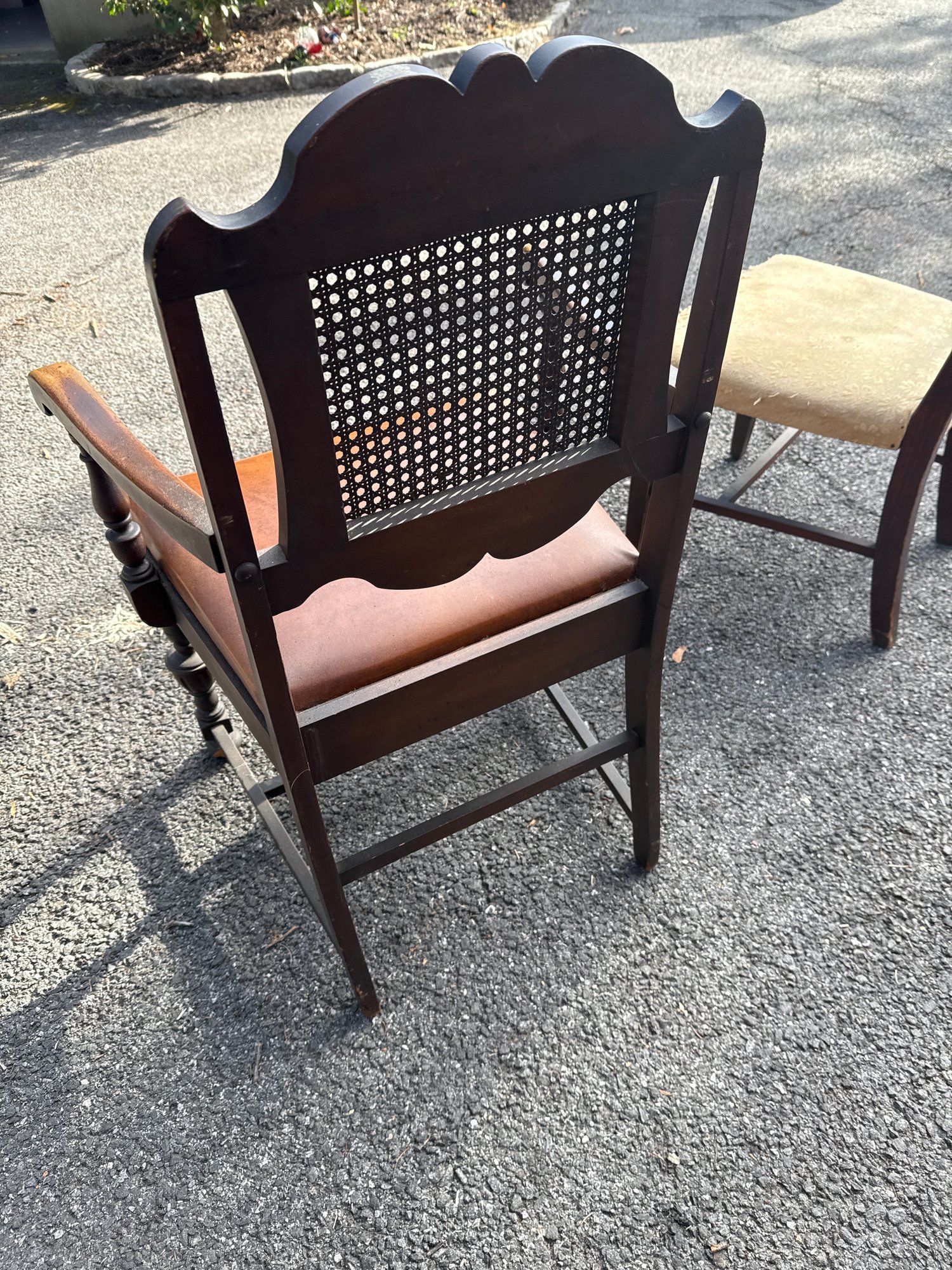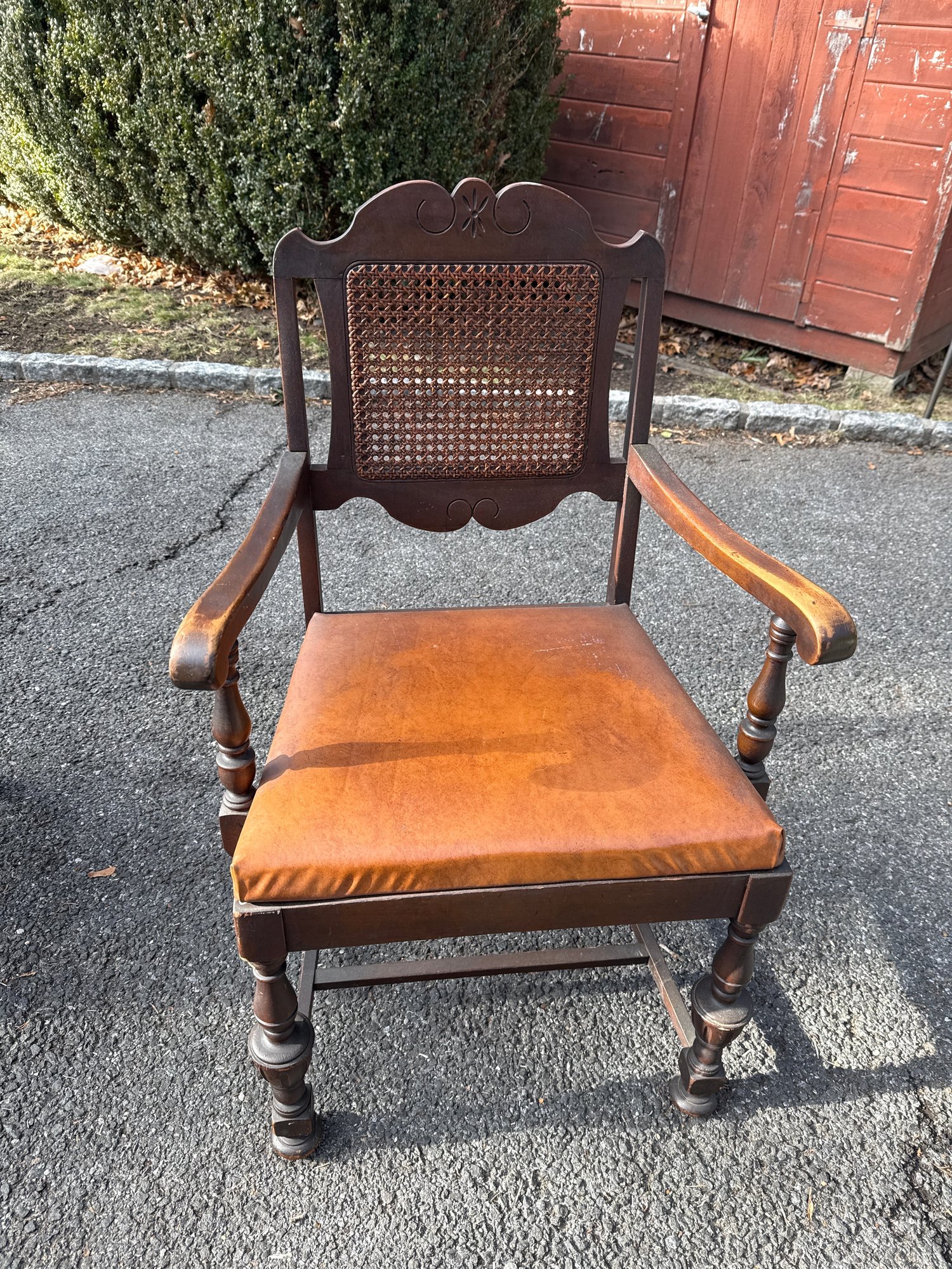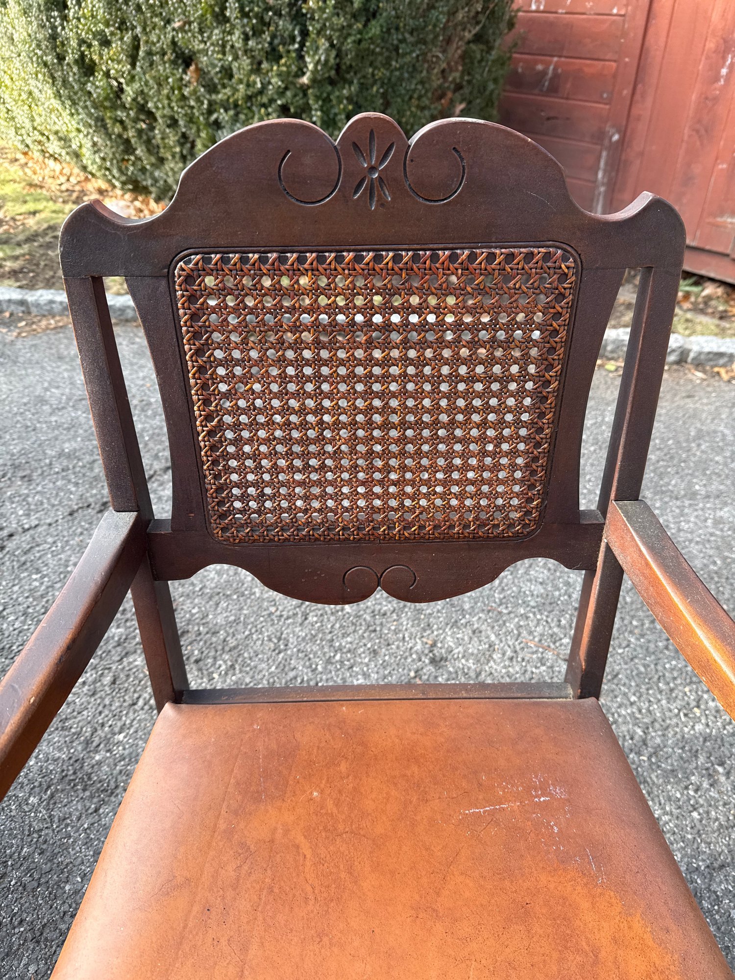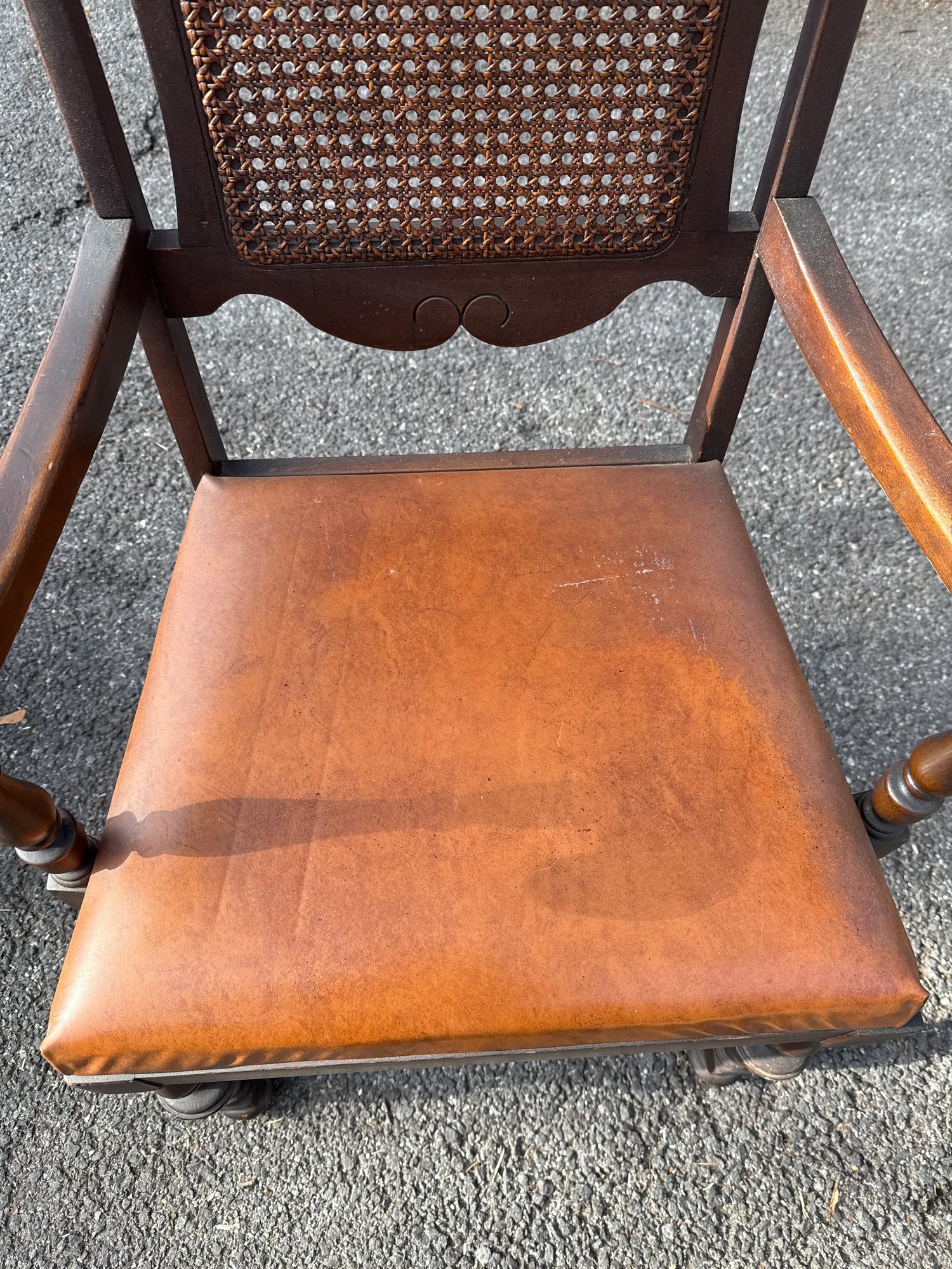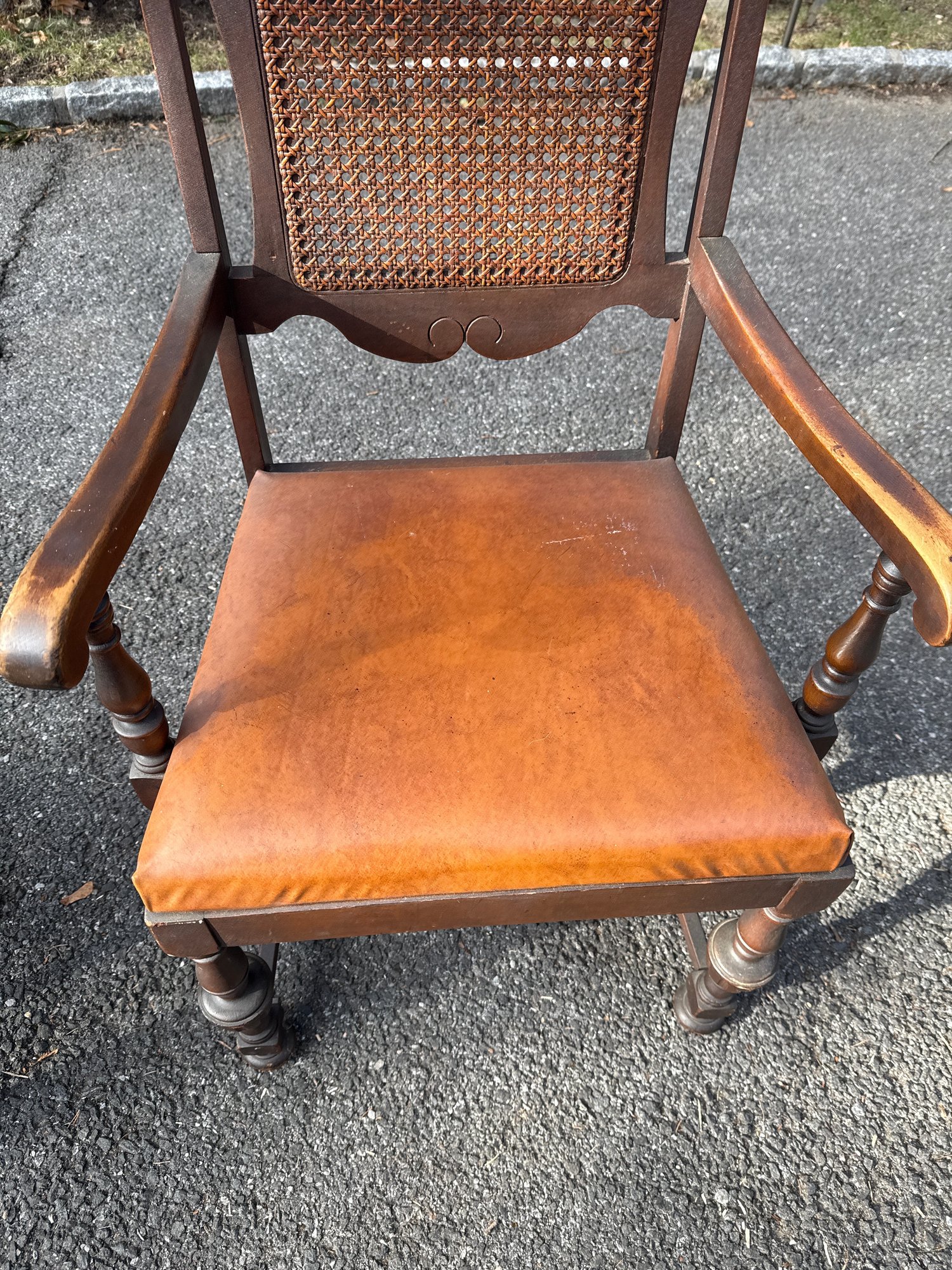 Antique Baroque-style Armchair With Cane Back And Leather Seat