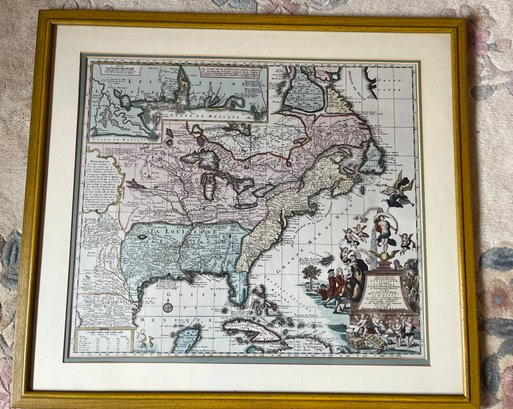 Antique Hand-colored Map Of North America By Cartographer Matthus Seutter