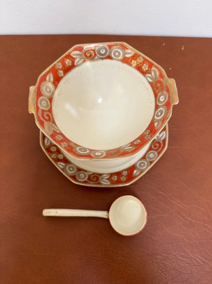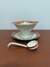 Antique Hand-painted Noritake Porcelain Gravy Boat Set With Ladle.