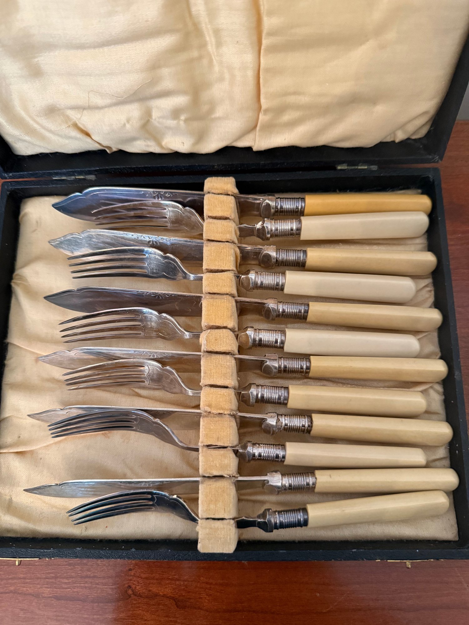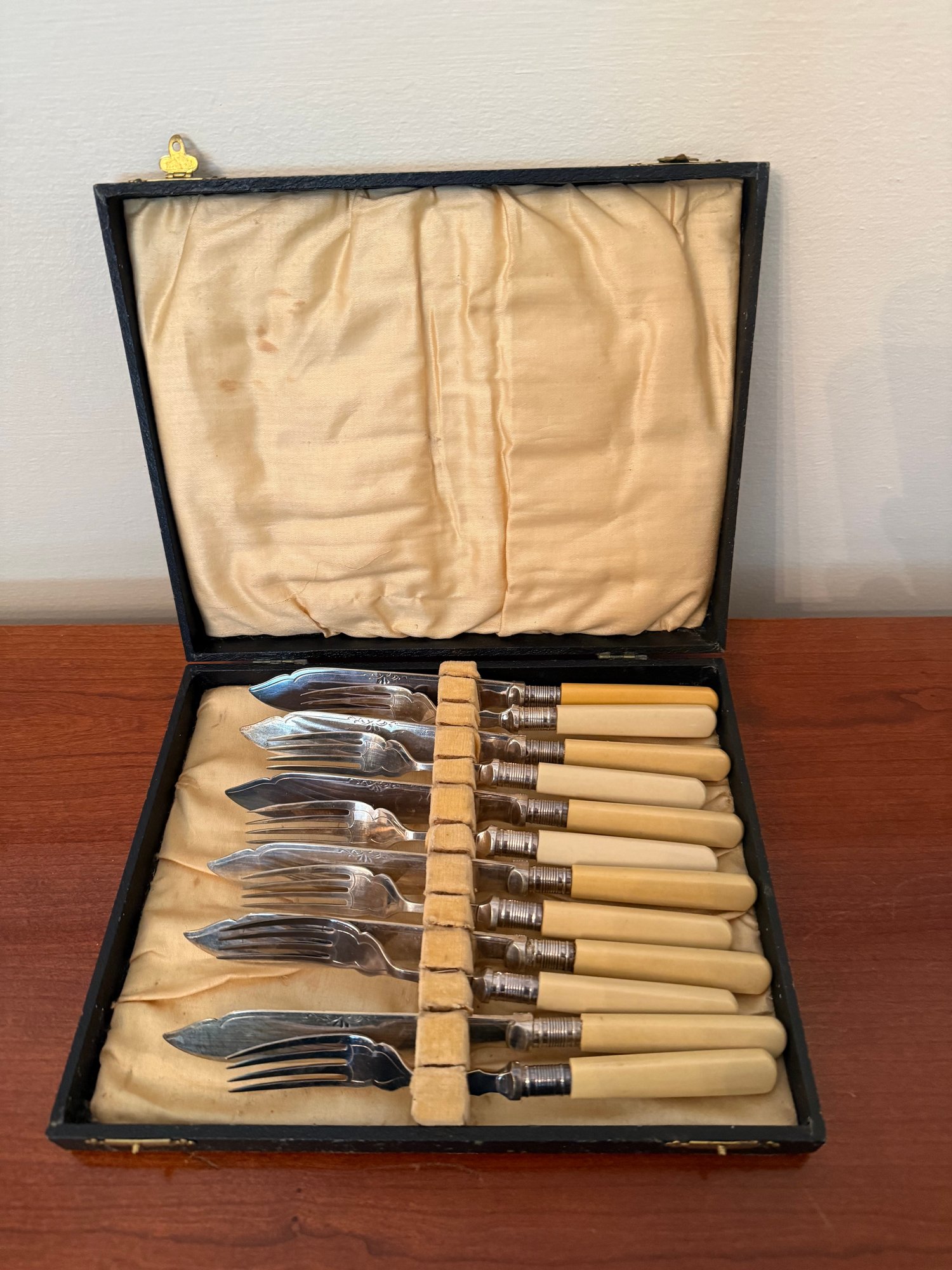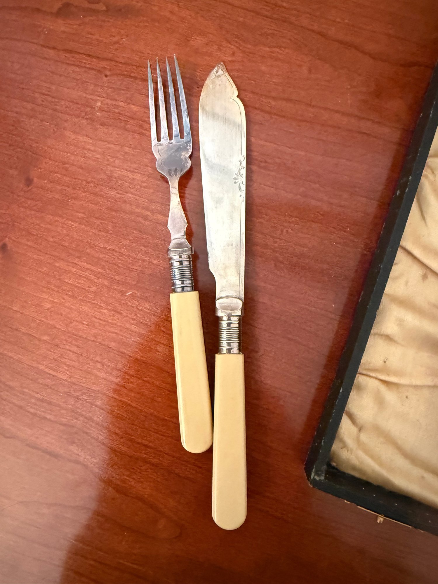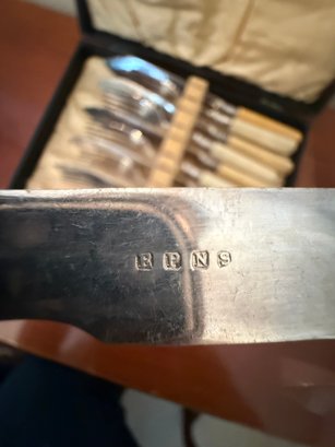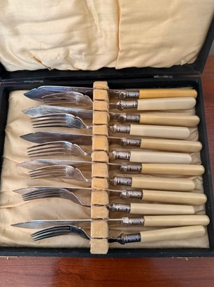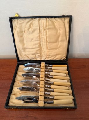 Antique John Gilbert Silver-plated Fish Cutlery Set With Celluloid Handles