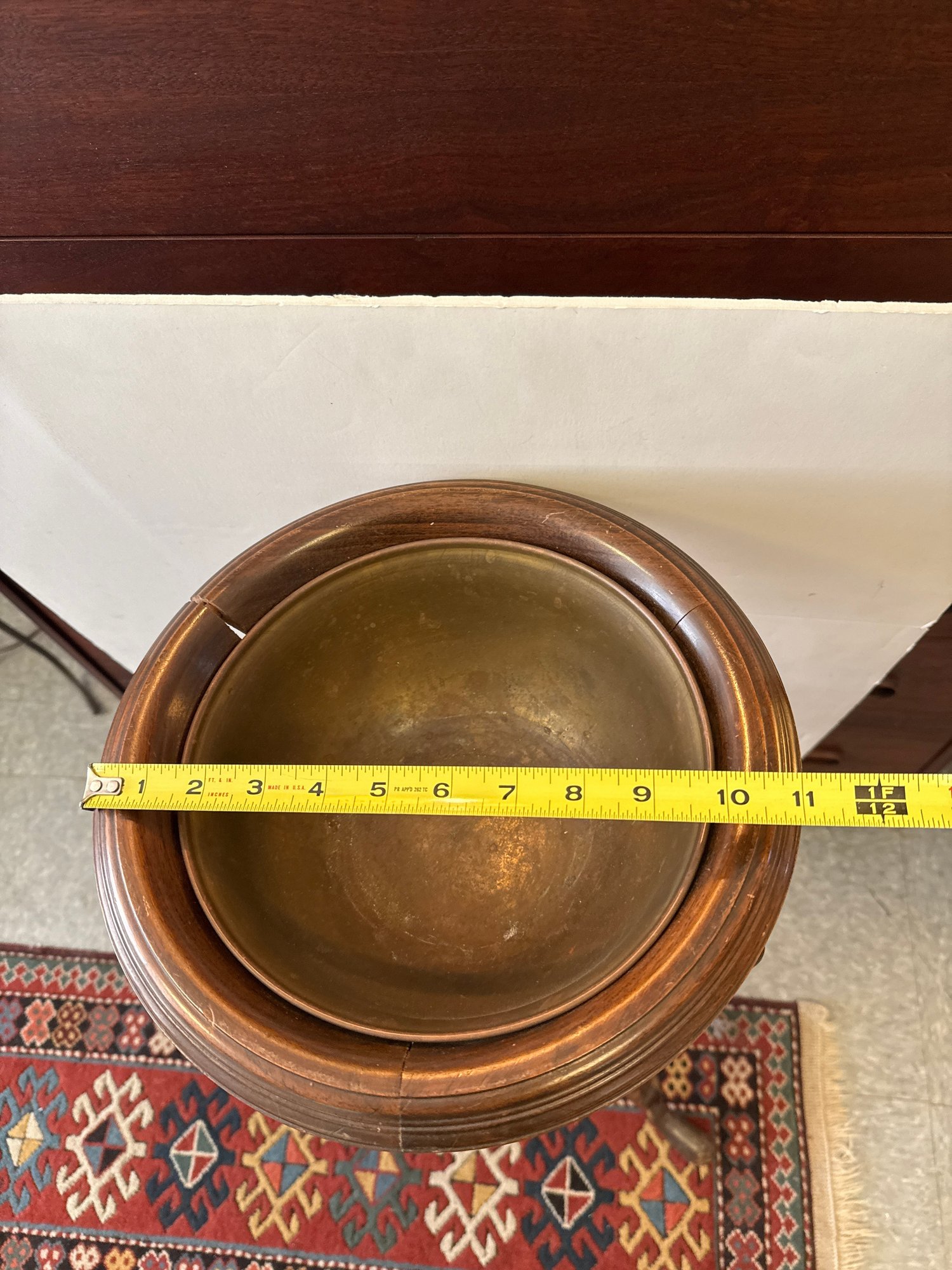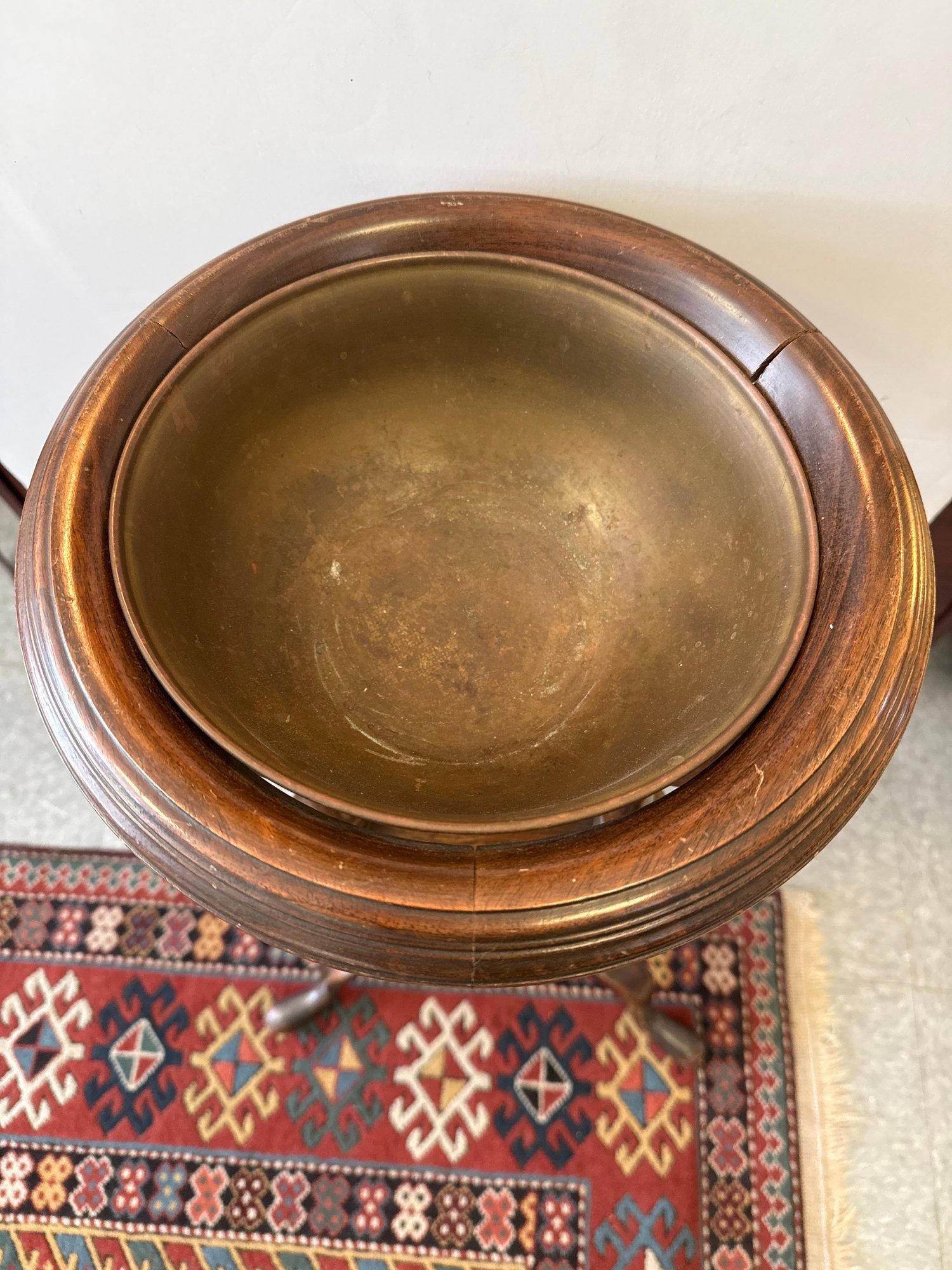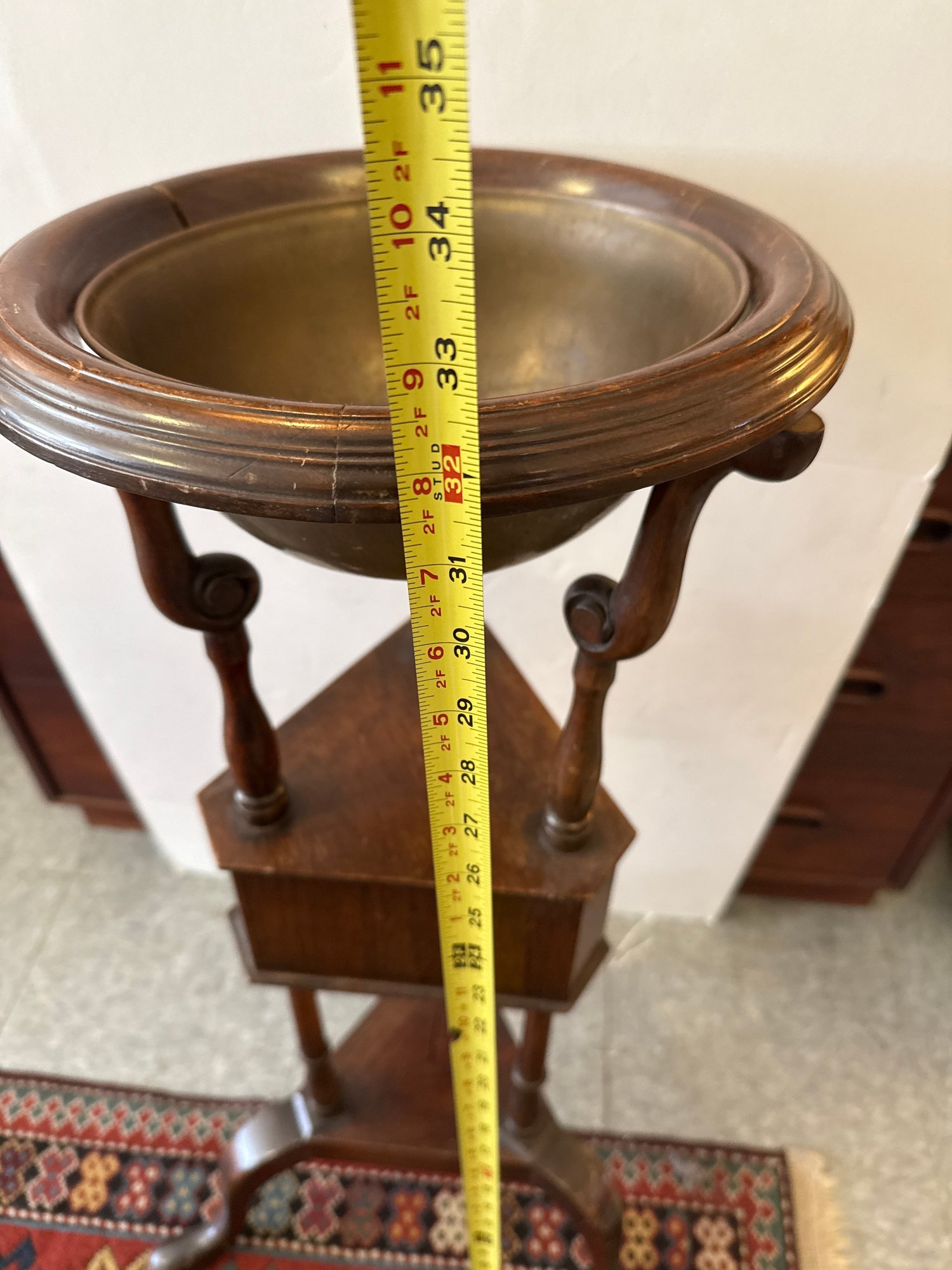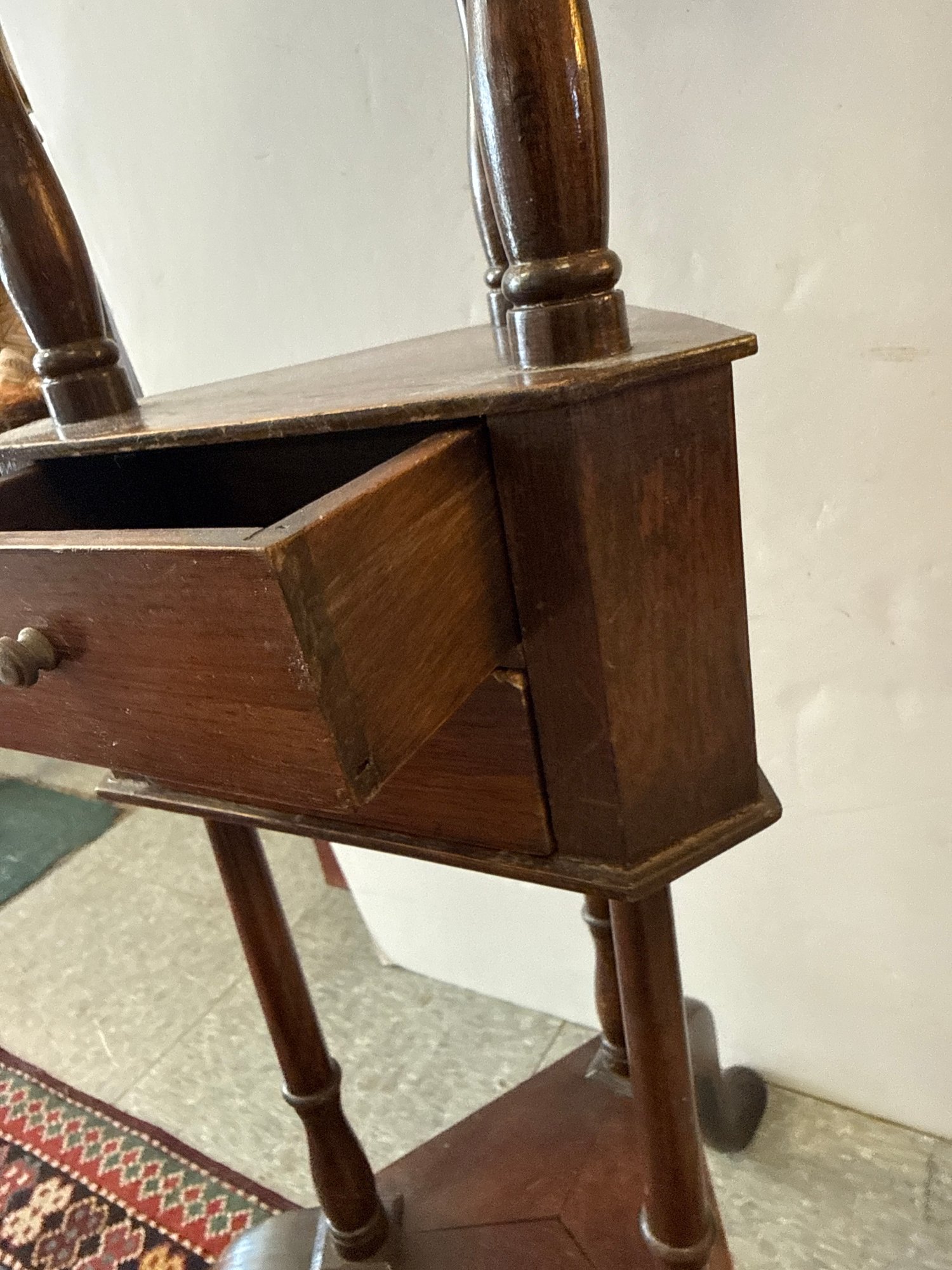Antique Wooden Washstand With Metal Basin And Two Drawers
