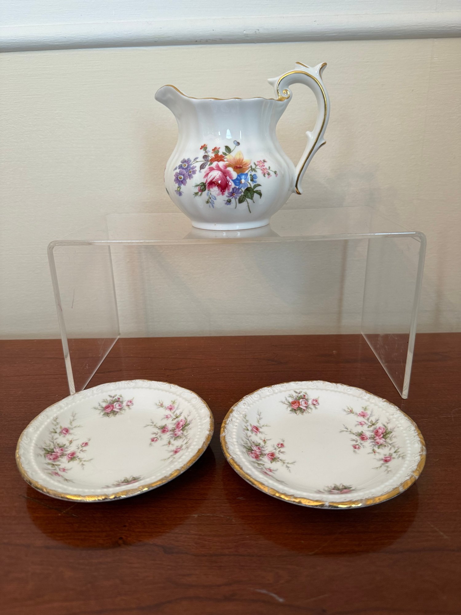 Paragon Victorian Rose Trinket Plates And Royal Crown Darby Pitcher