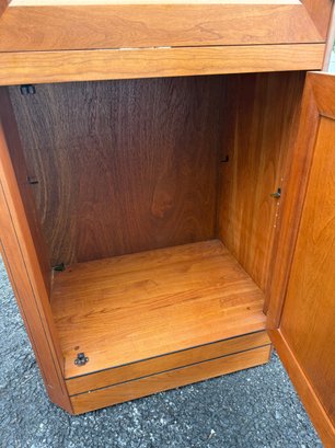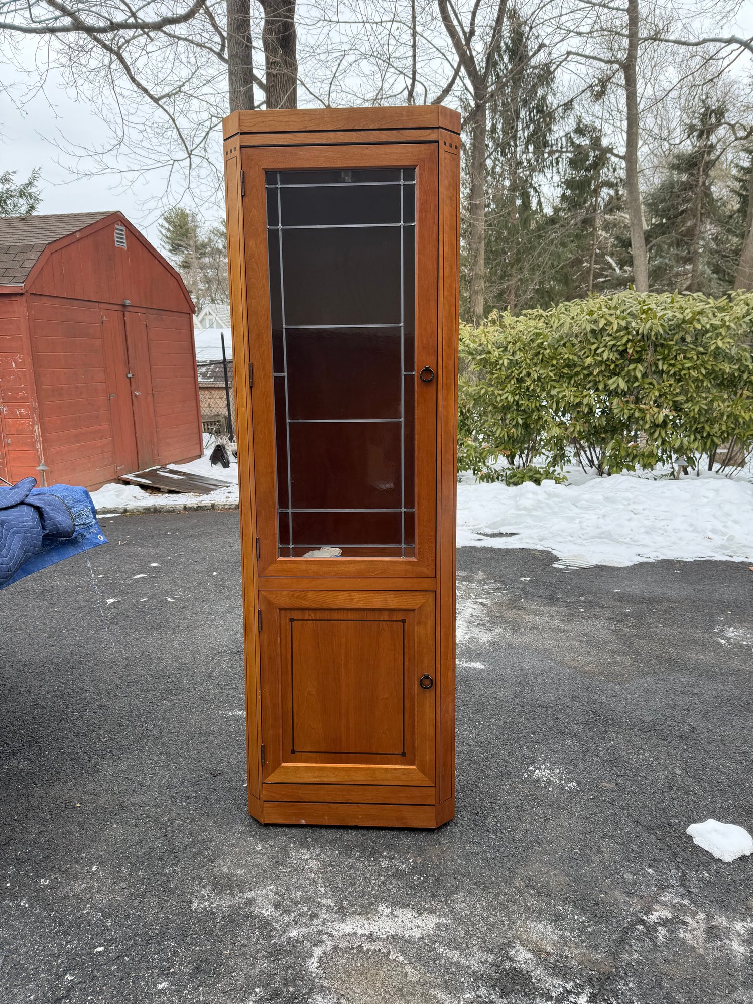 Arts And Crafts Cherry Wood Corner Cabinet With Leaded Glass Upper Doors # 2