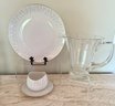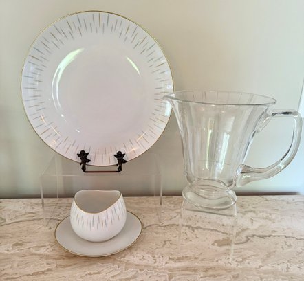 Atomic Like Johann Haviland Bavaria Platter/Gravy Boat And Mid Century Modern Glass Pitcher