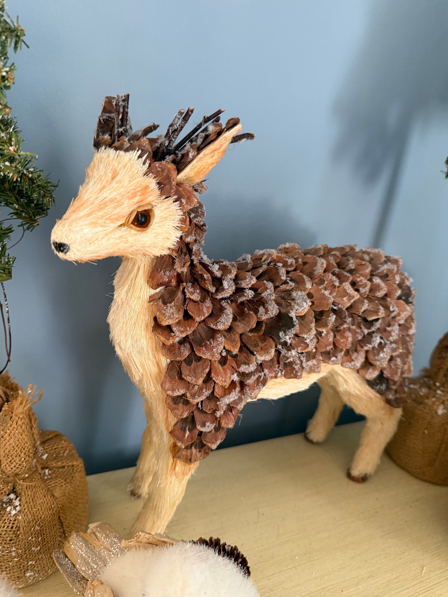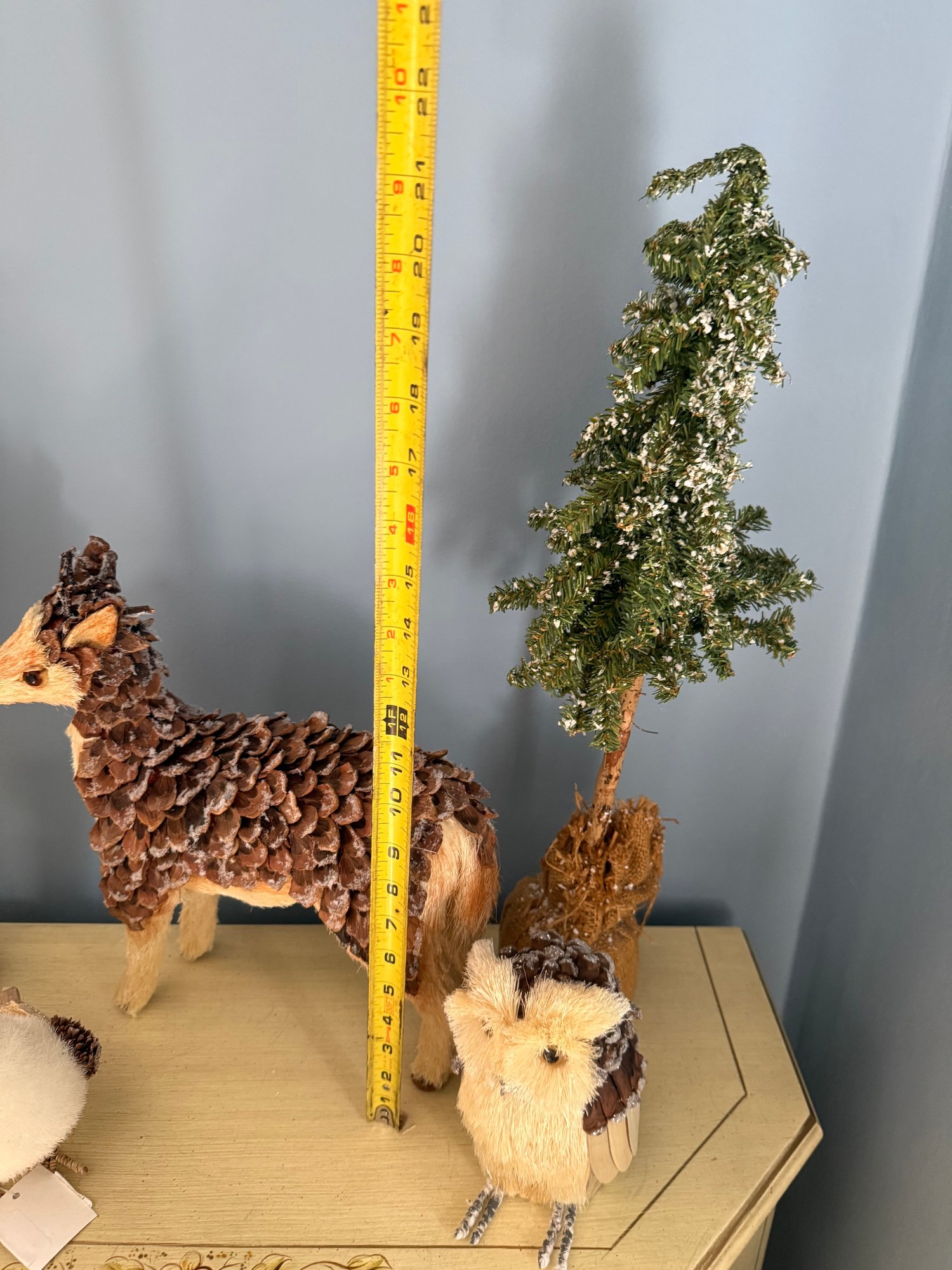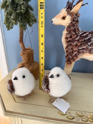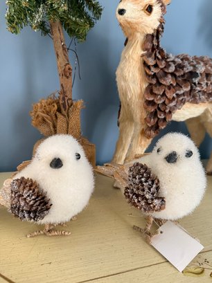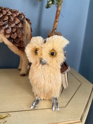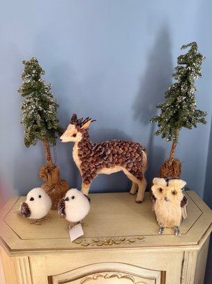 Natural Materials A Collection Of Modern Decorative Holiday Figures Including Birds, Deer, Owl, And Trees
