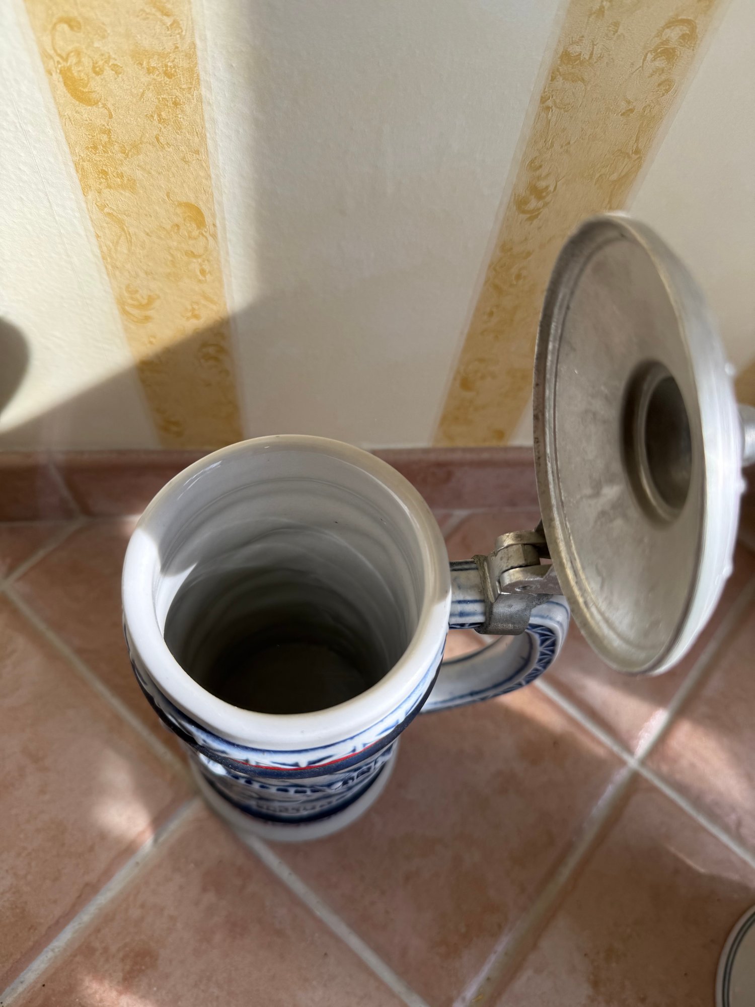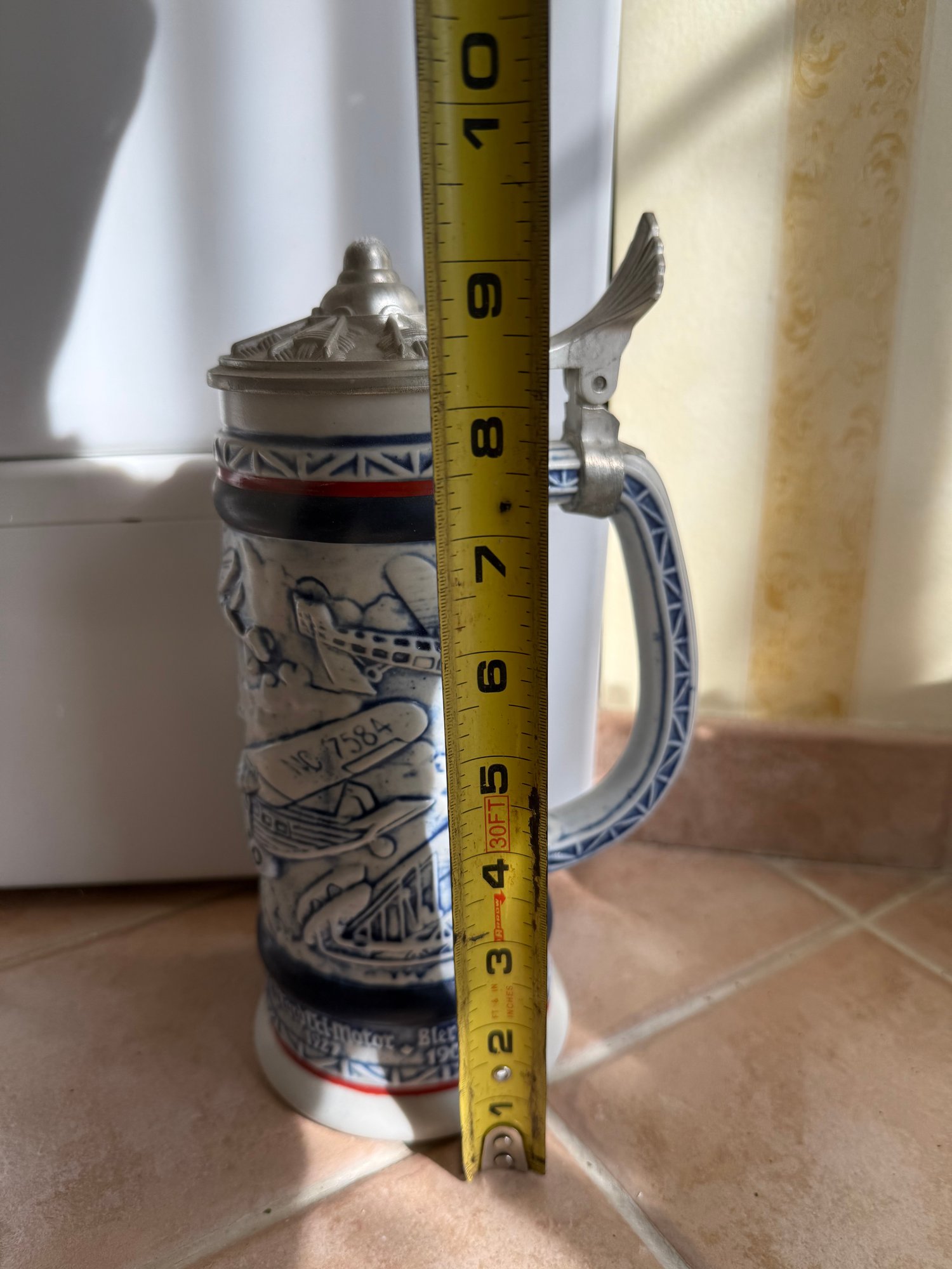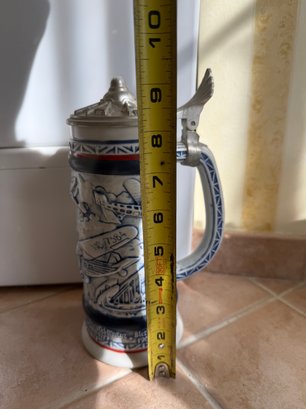 Avon 1981 Ceramic Beer Stein Featuring Piper Cub J-3 And Sikorsky Seaplane