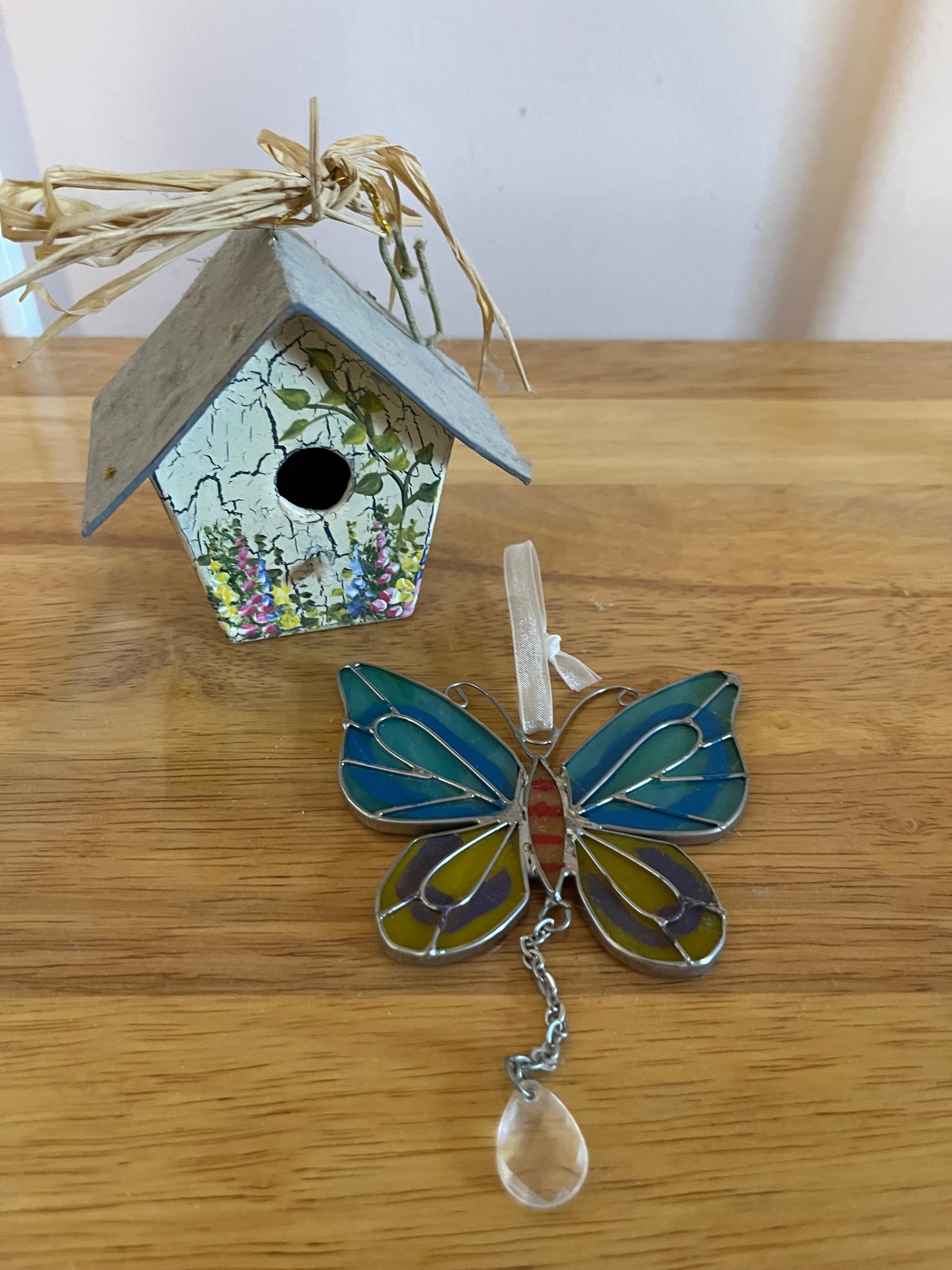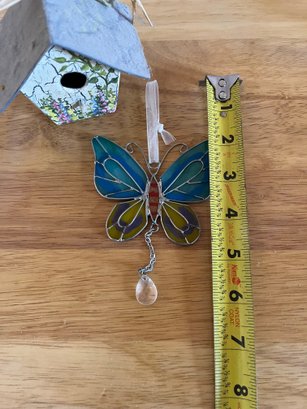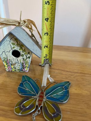 Birdhouse Ornament And Butterfly Stain Glass Ornament