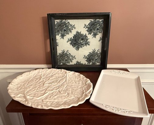 Black And White Floral Trays, White Tray And Leaf White Tray Japan