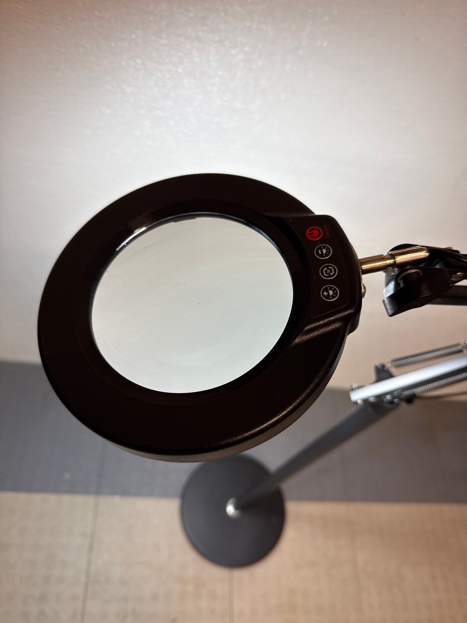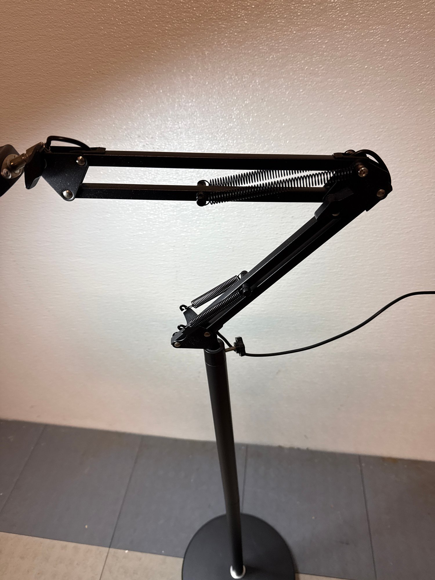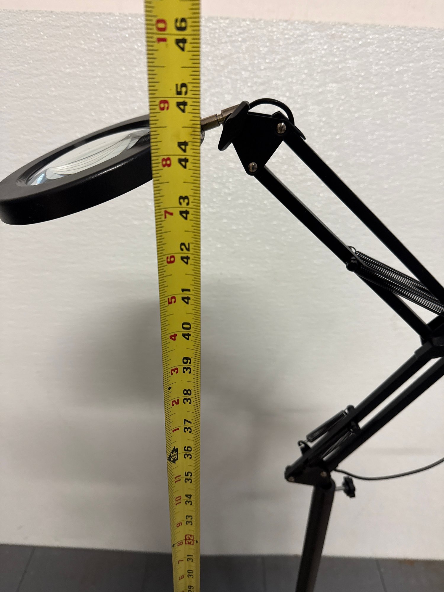 Black LED Magnifying Lamp With A Floor Stand And An Adjustable Swing Arm