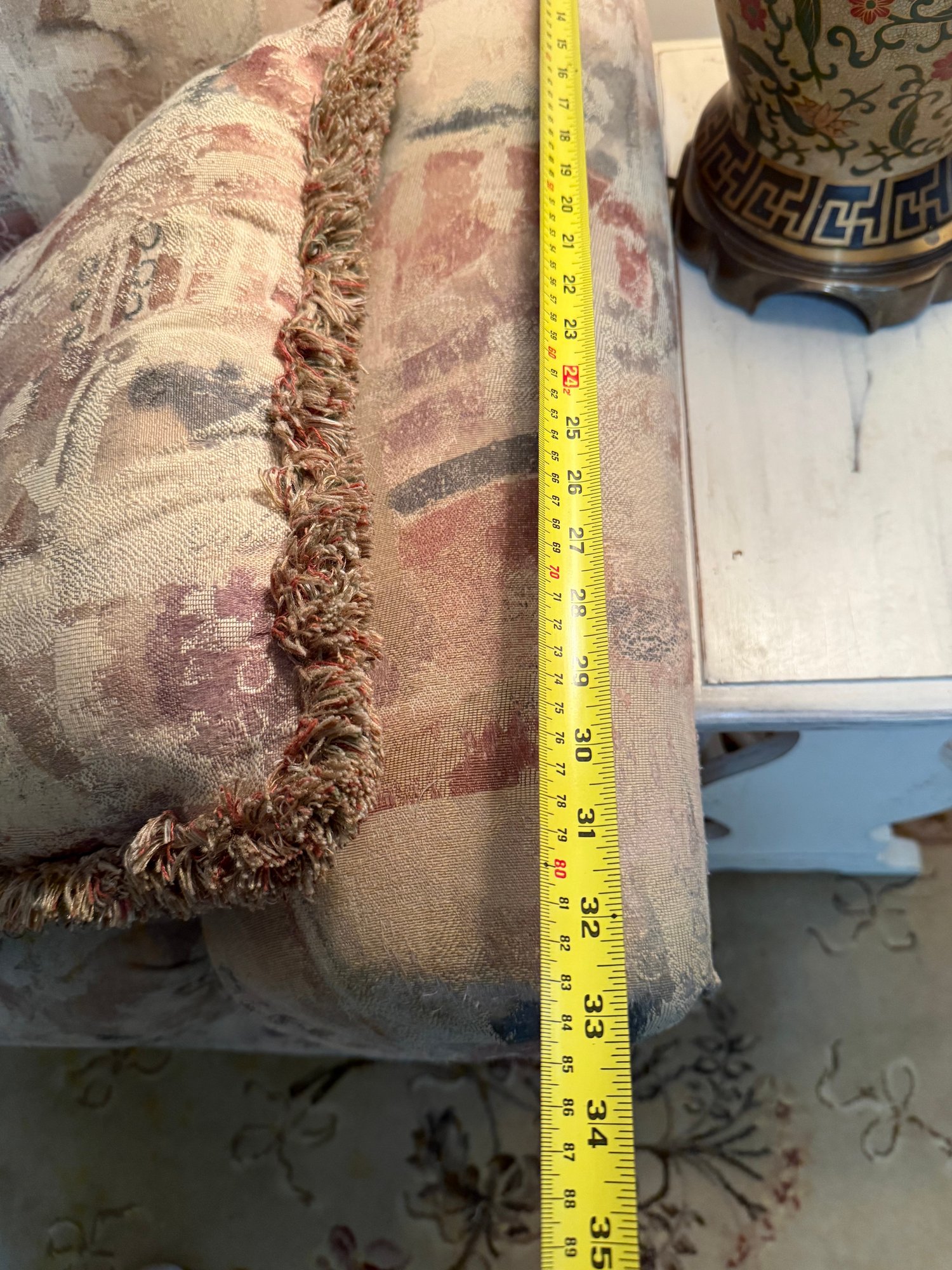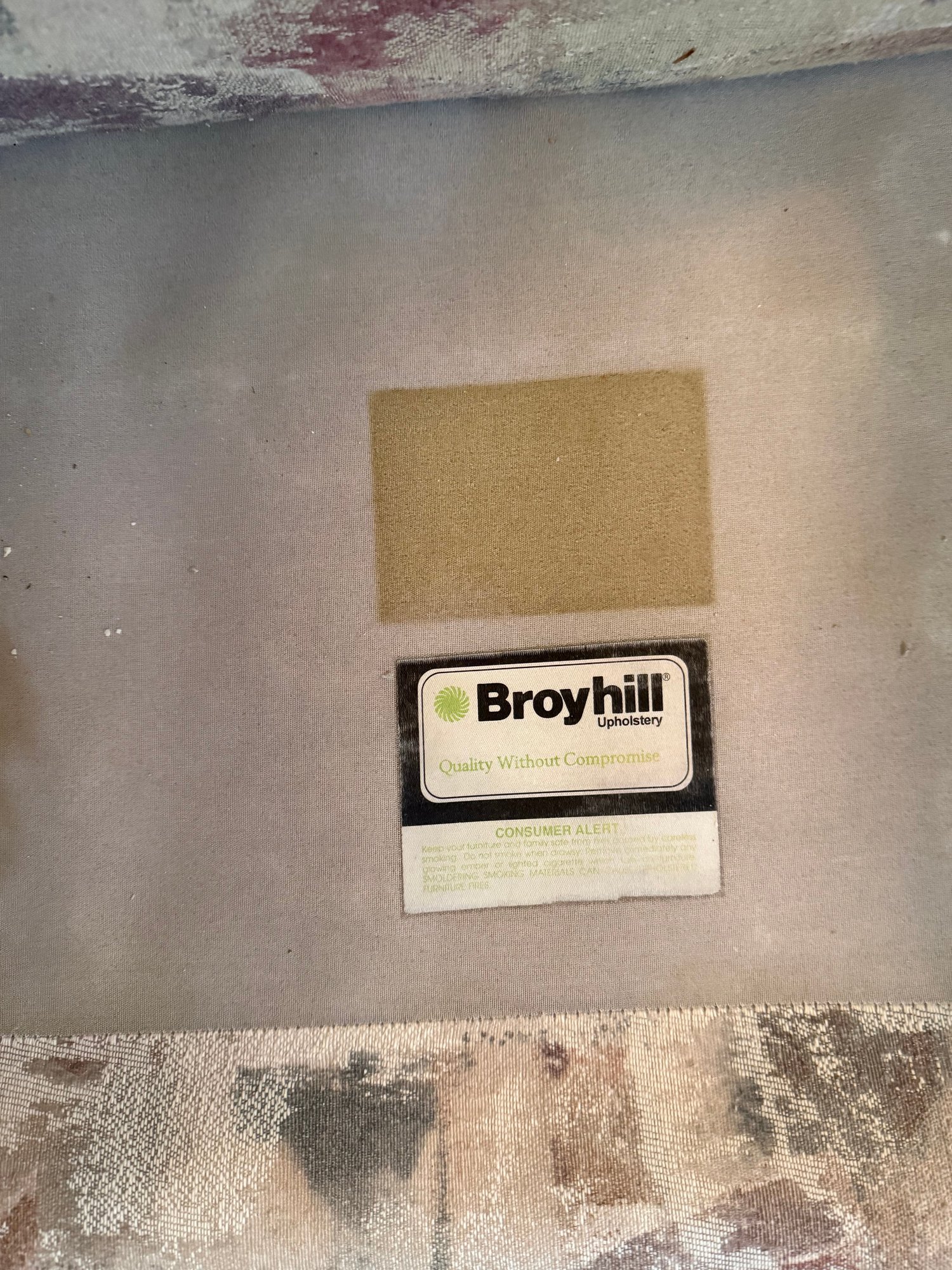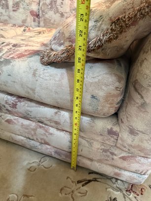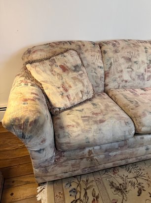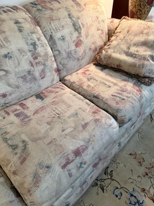 Broyhill Three-seater Sofa With Abstract Patterned Upholstery And Two Throw Pillows
