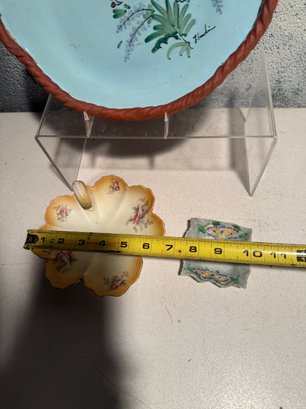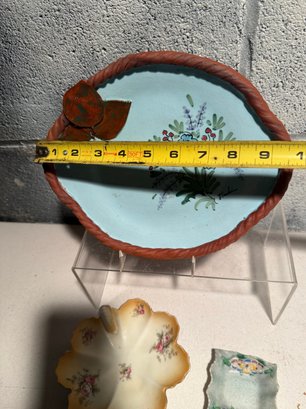 Buchan Pottery Hand-painted Stoneware Dish W/ Blue Base, Brown Braided Border, Leaf Shaped Dish & More