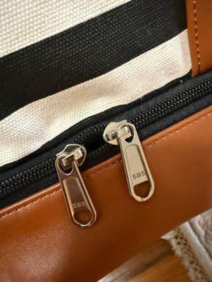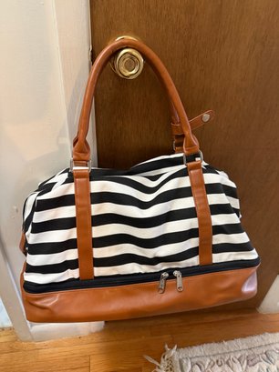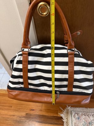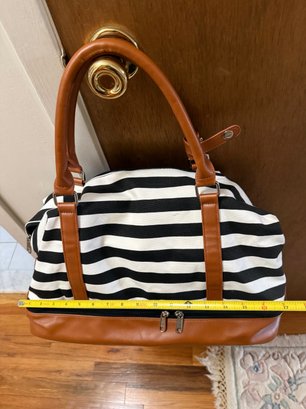 Canvas And Faux Leather Weekender Duffel Bag, Featuring A Distinct Black-and-white Striped Design