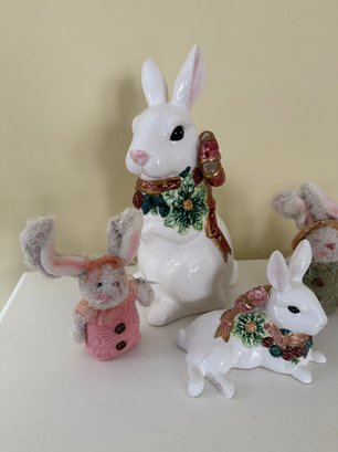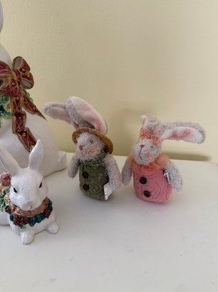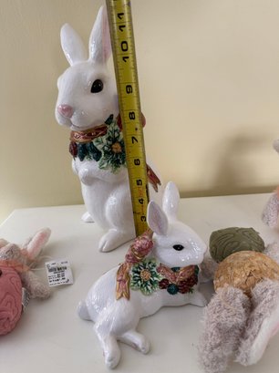 Ceramic Easter Bunnies, And Standing Stuffed Bunnies