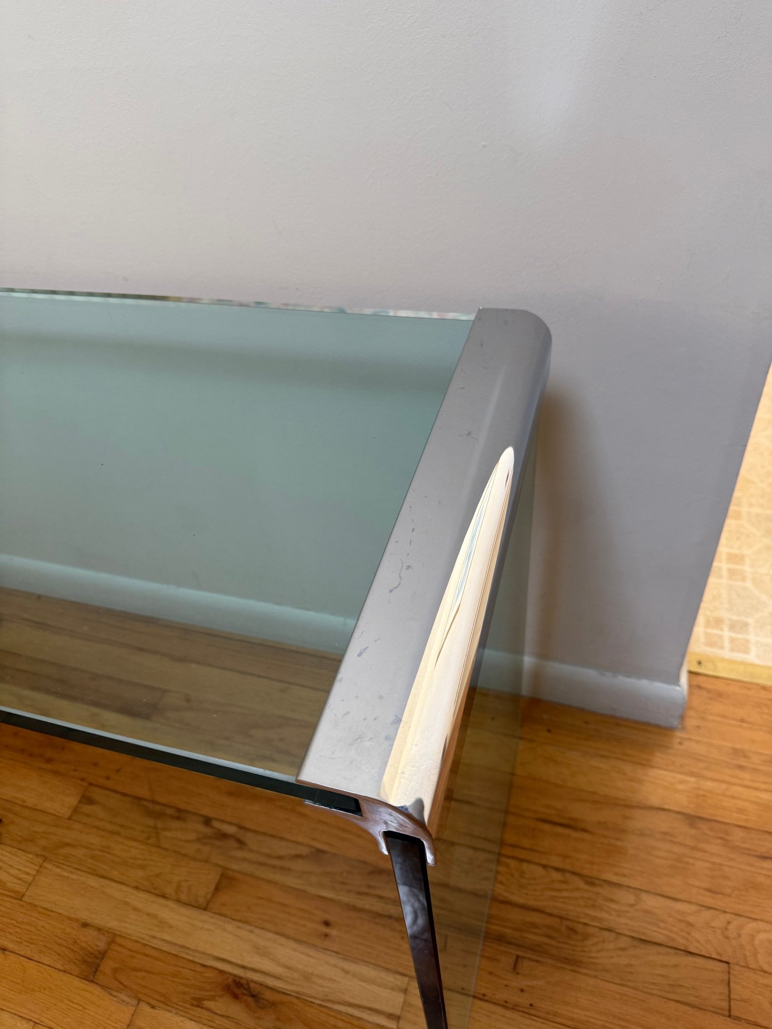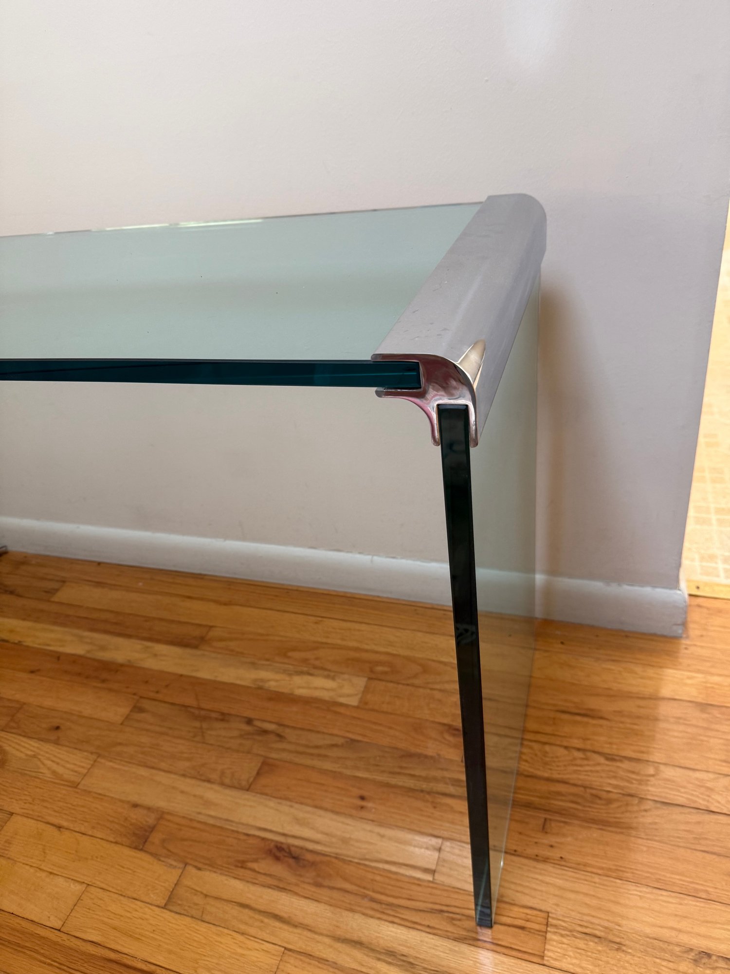 Nickel And Glass Console Table In The Style Of Leon Rosen For Pace