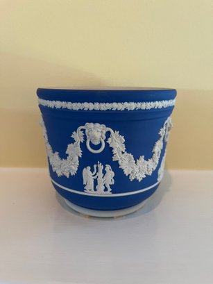 Cobalt Blue Wedgwood Jasperware Planter With White Relief Classical Decorations