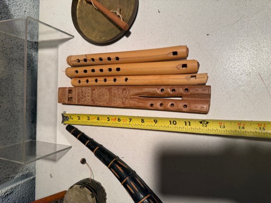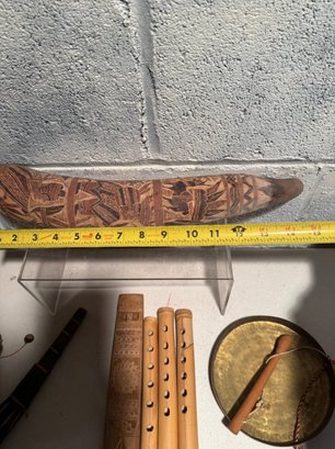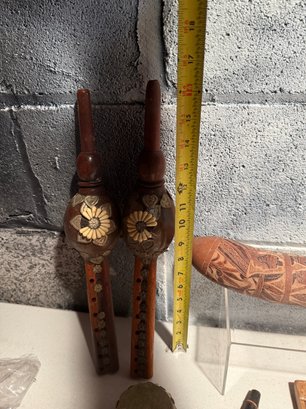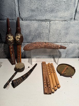 Collection Of Artisan Musical Instruments, Likely Handcrafted In The Andean Style