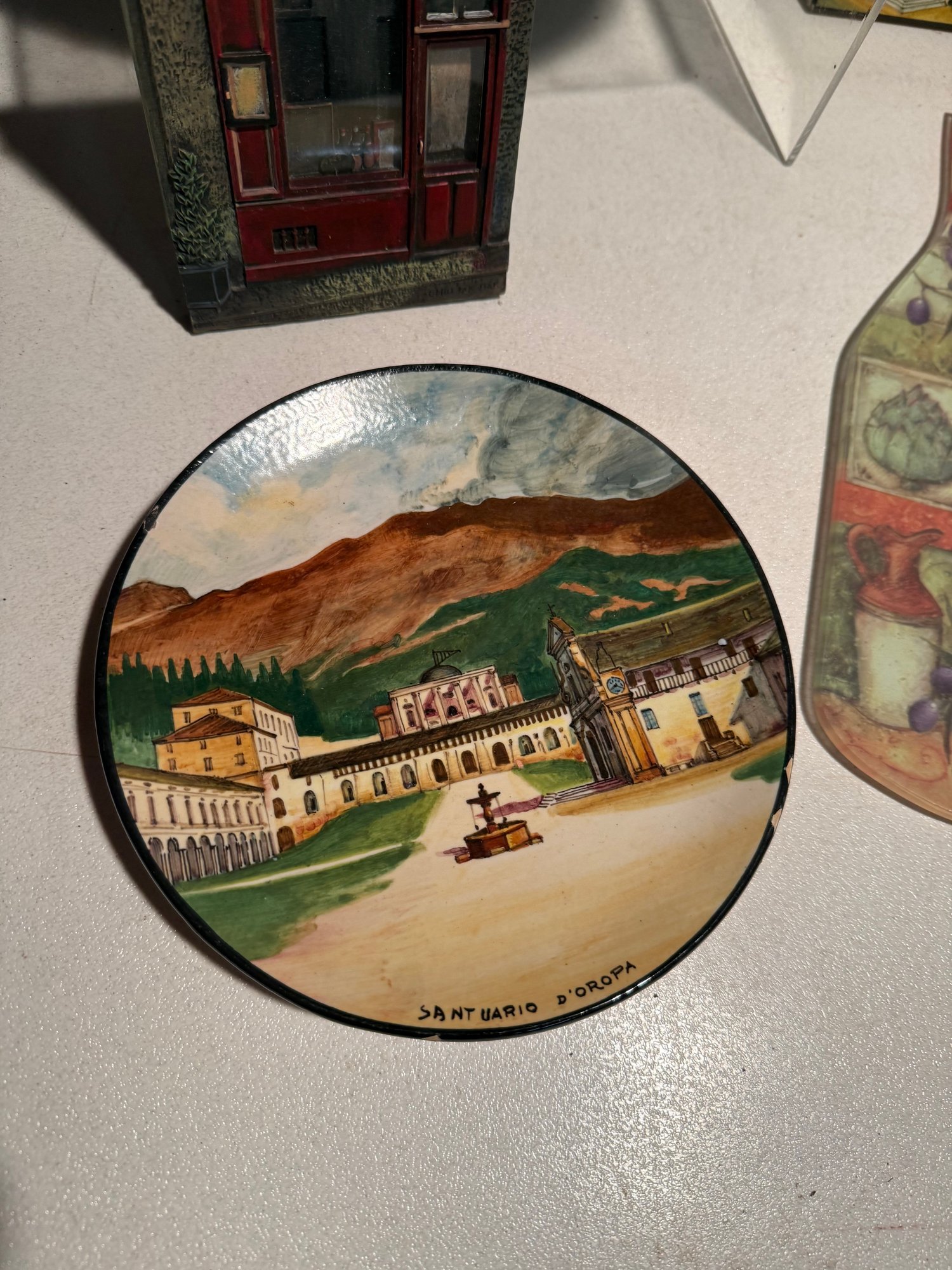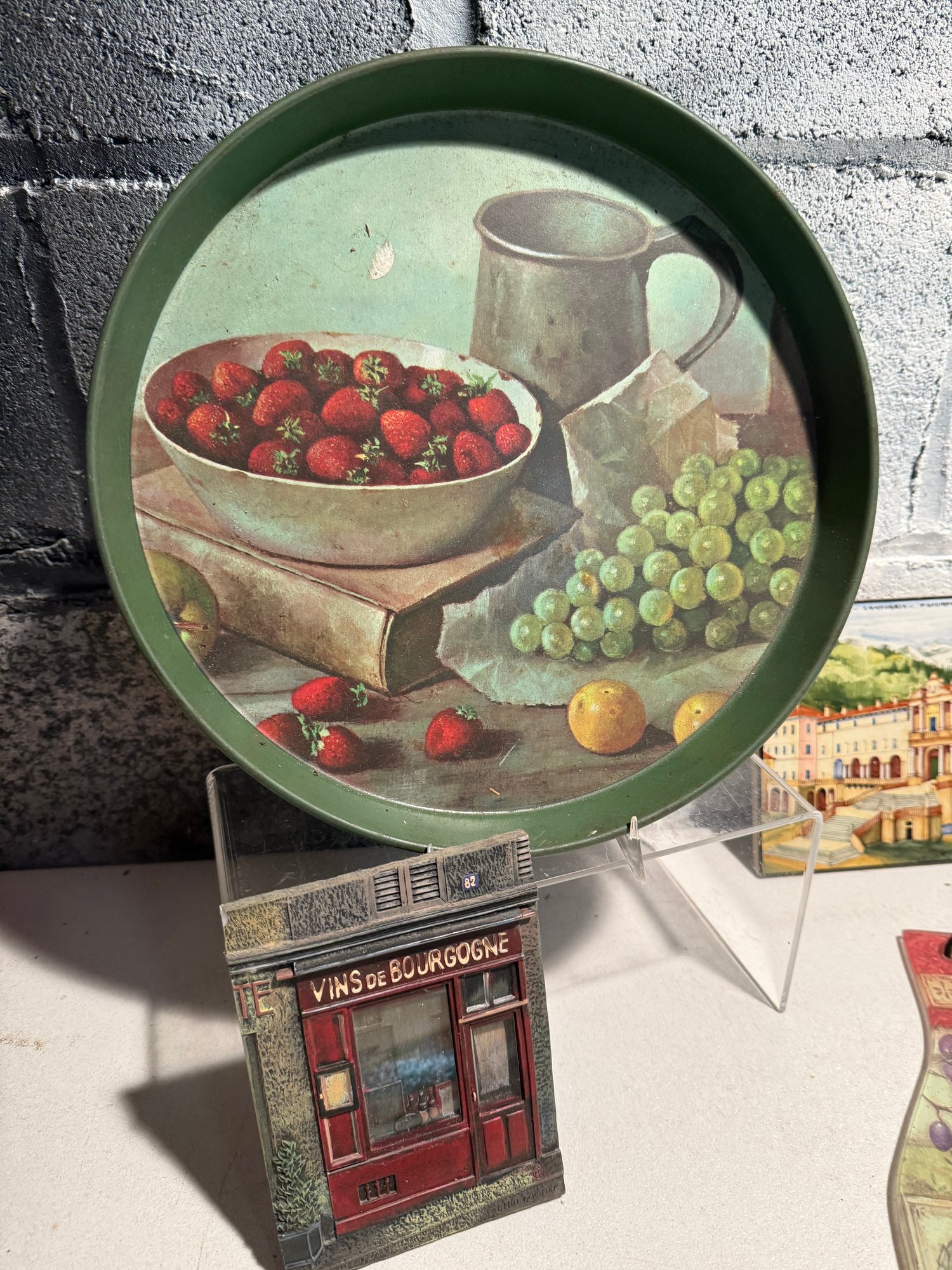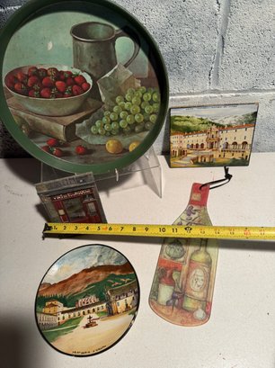Collection Of Decorative Kitchen Items Featuring Vineyard And European Architectural Scenes