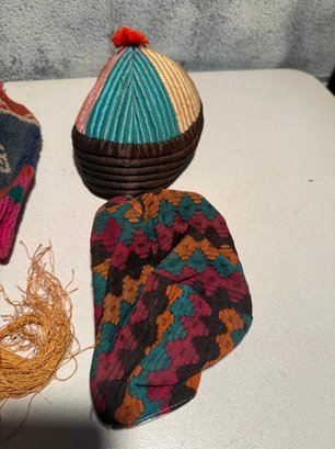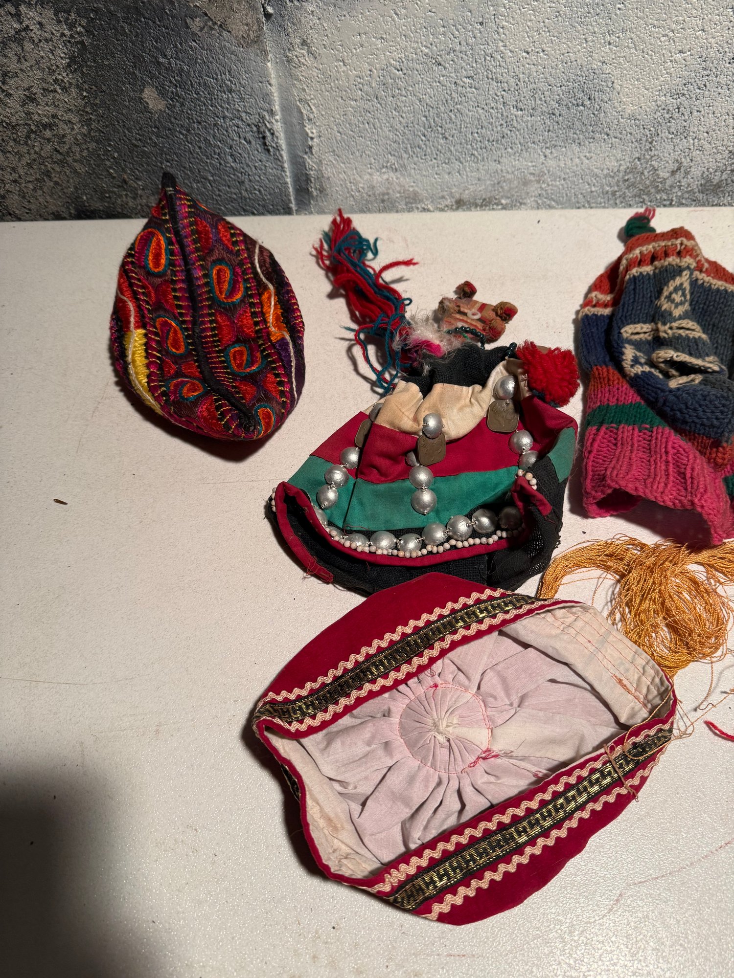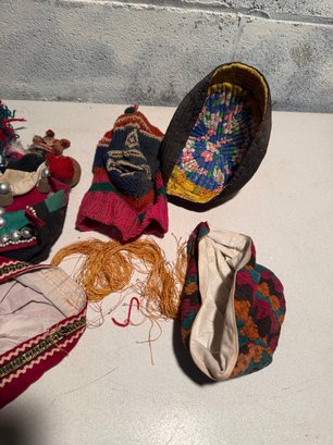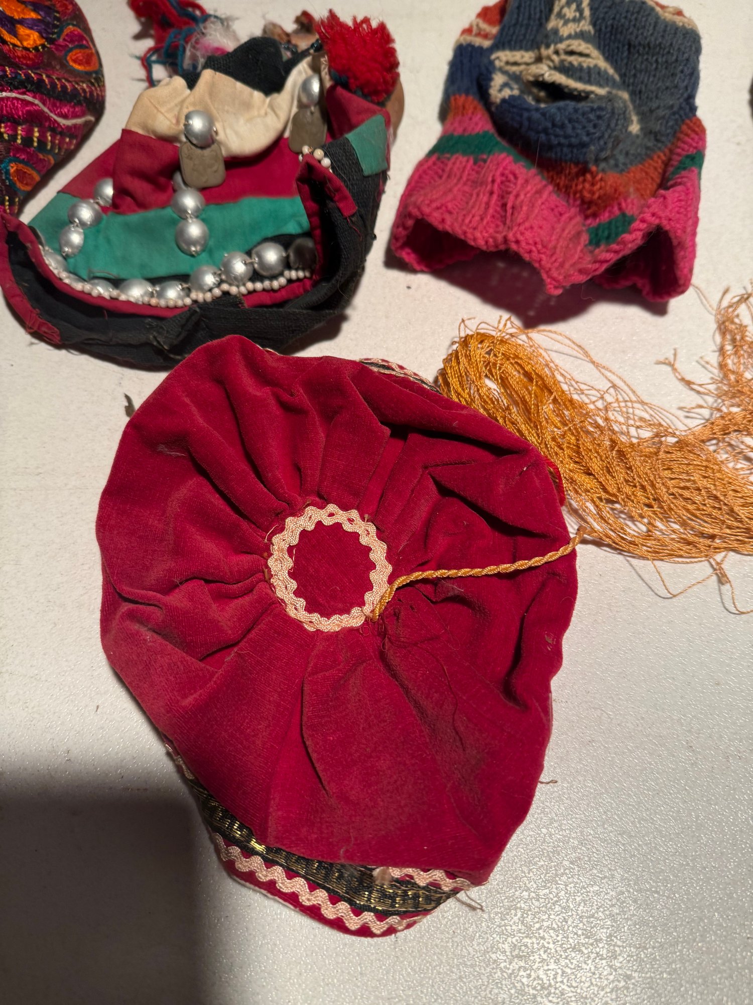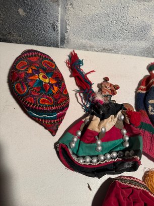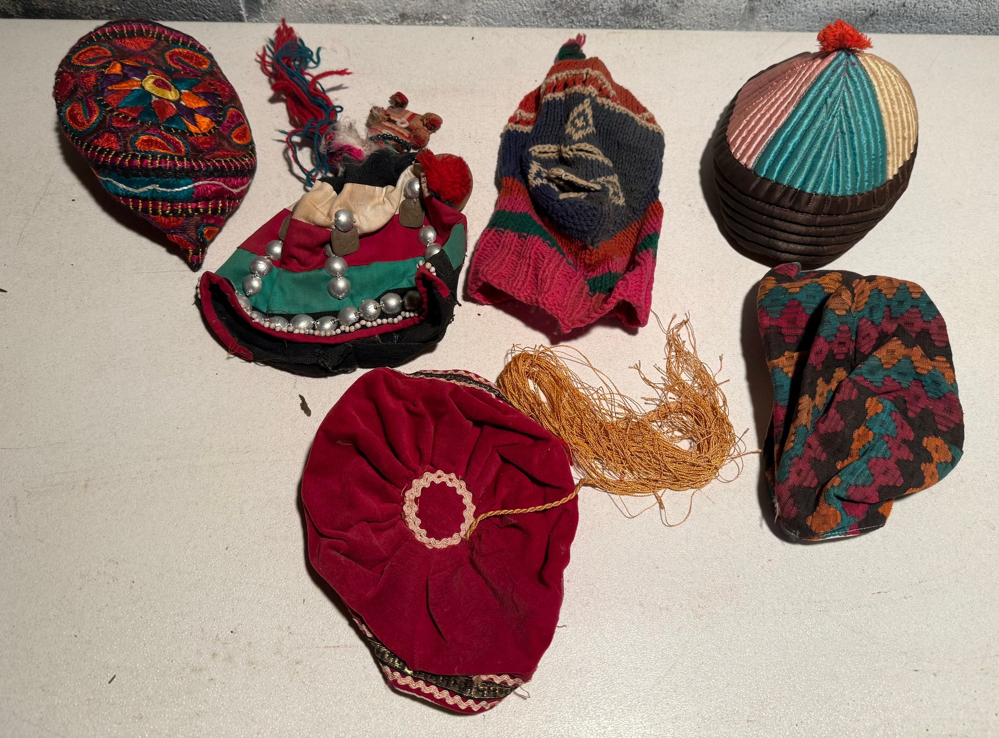 Collection Of Seven Small, Decorative Central Asian Textile Caps