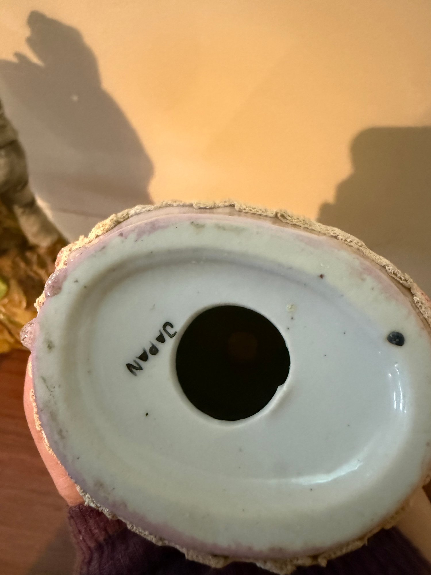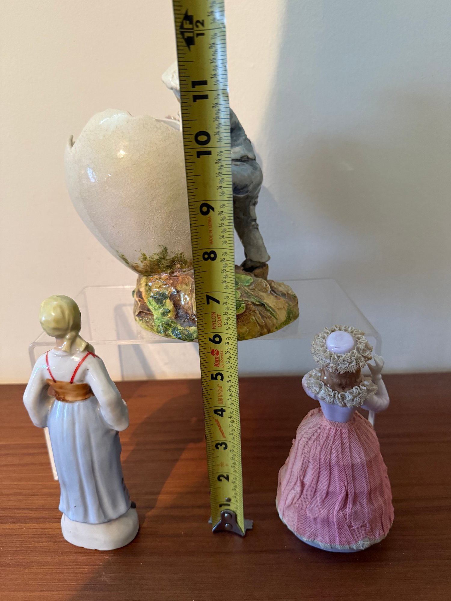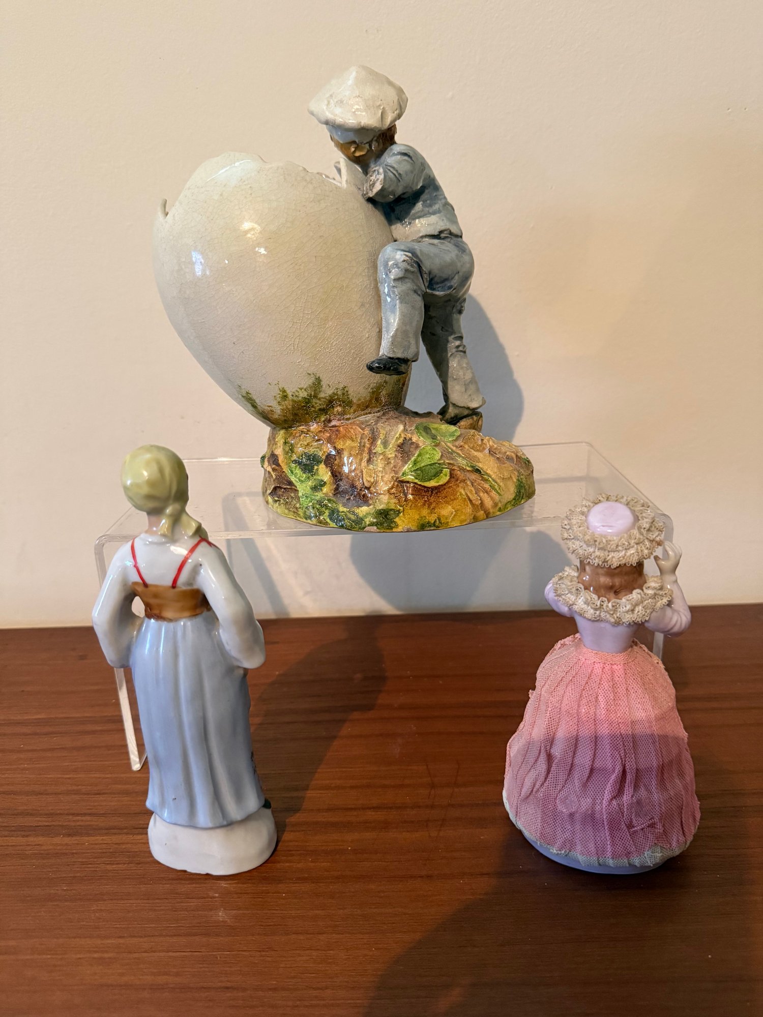 Collection Of Three Antique Japanese Porcelain Figurines, Including An Egg Carrier.