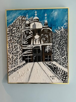 Colorful Cathedral Painting, Signed Gutig 83