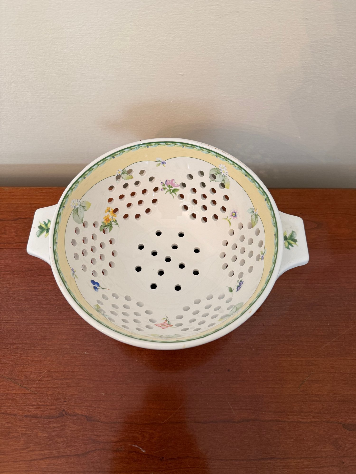 Decorative Ceramic Colander With Hand-painted Floral Motifs