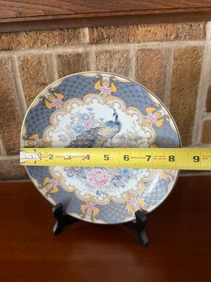 Decorative Japanese Imari Porcelain Plate With A Peacock And Floral Motif