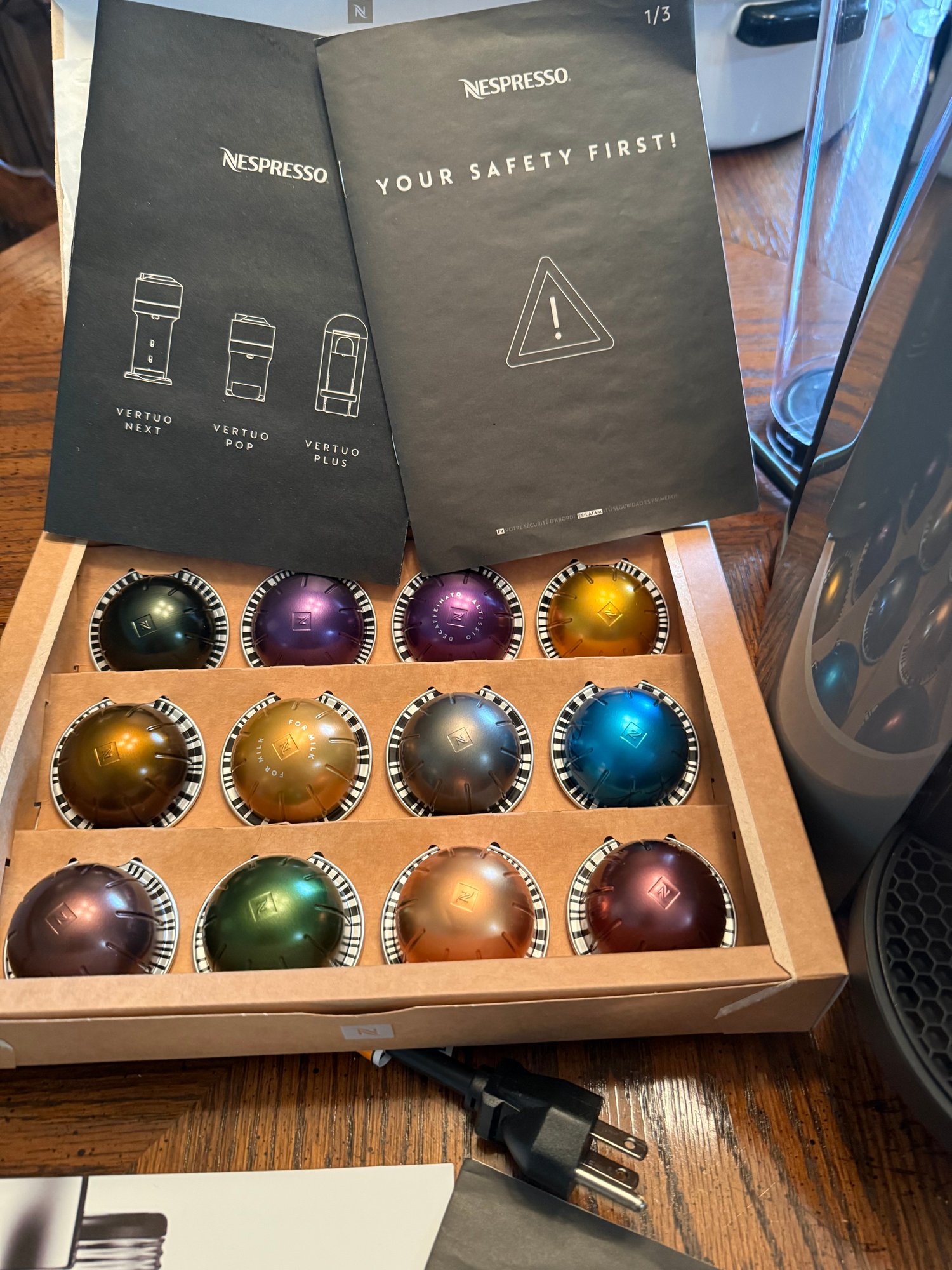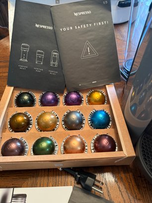 DeLonghi Nespresso Vertuo Coffee Machine With Capsules And Manuals