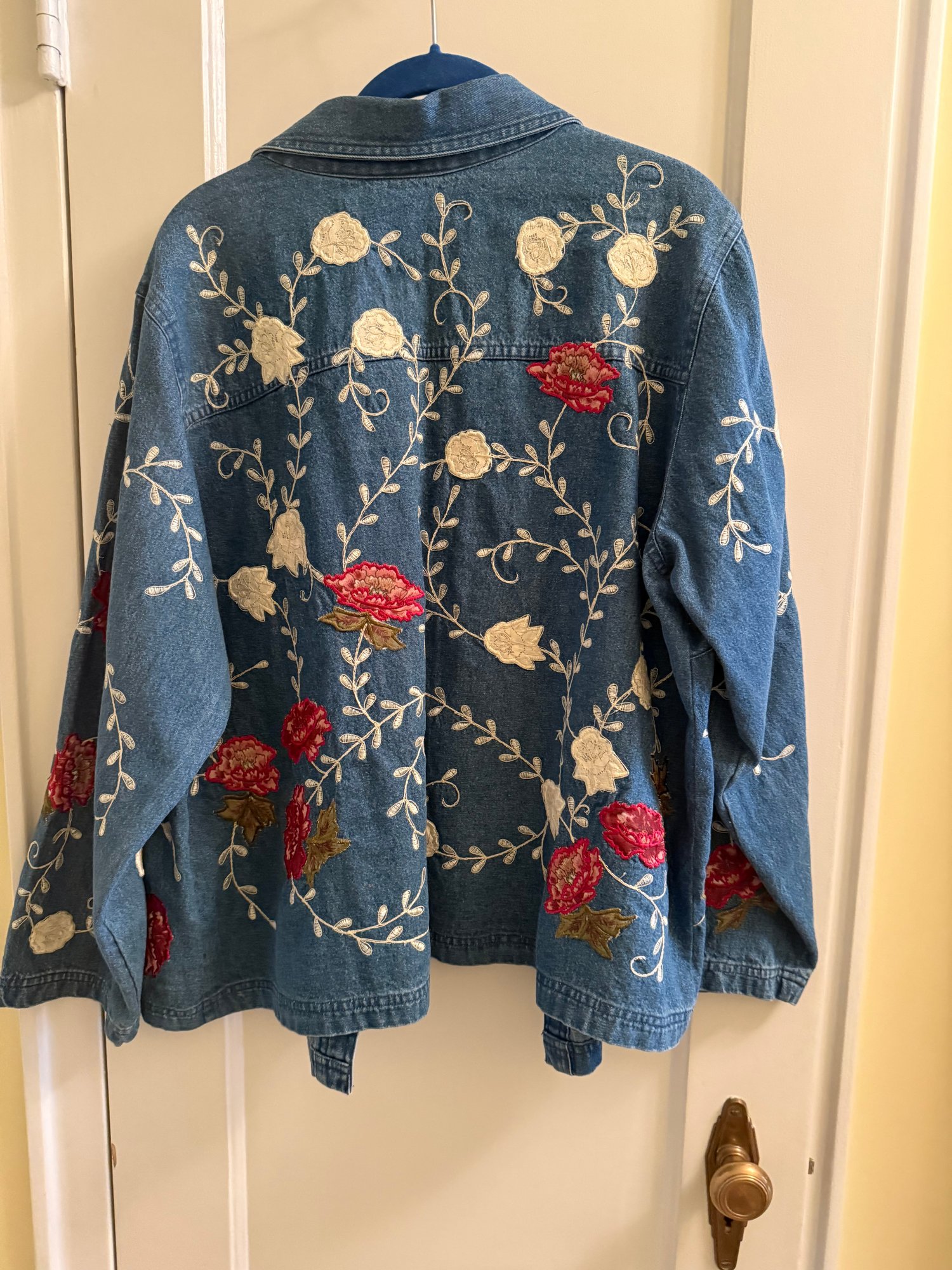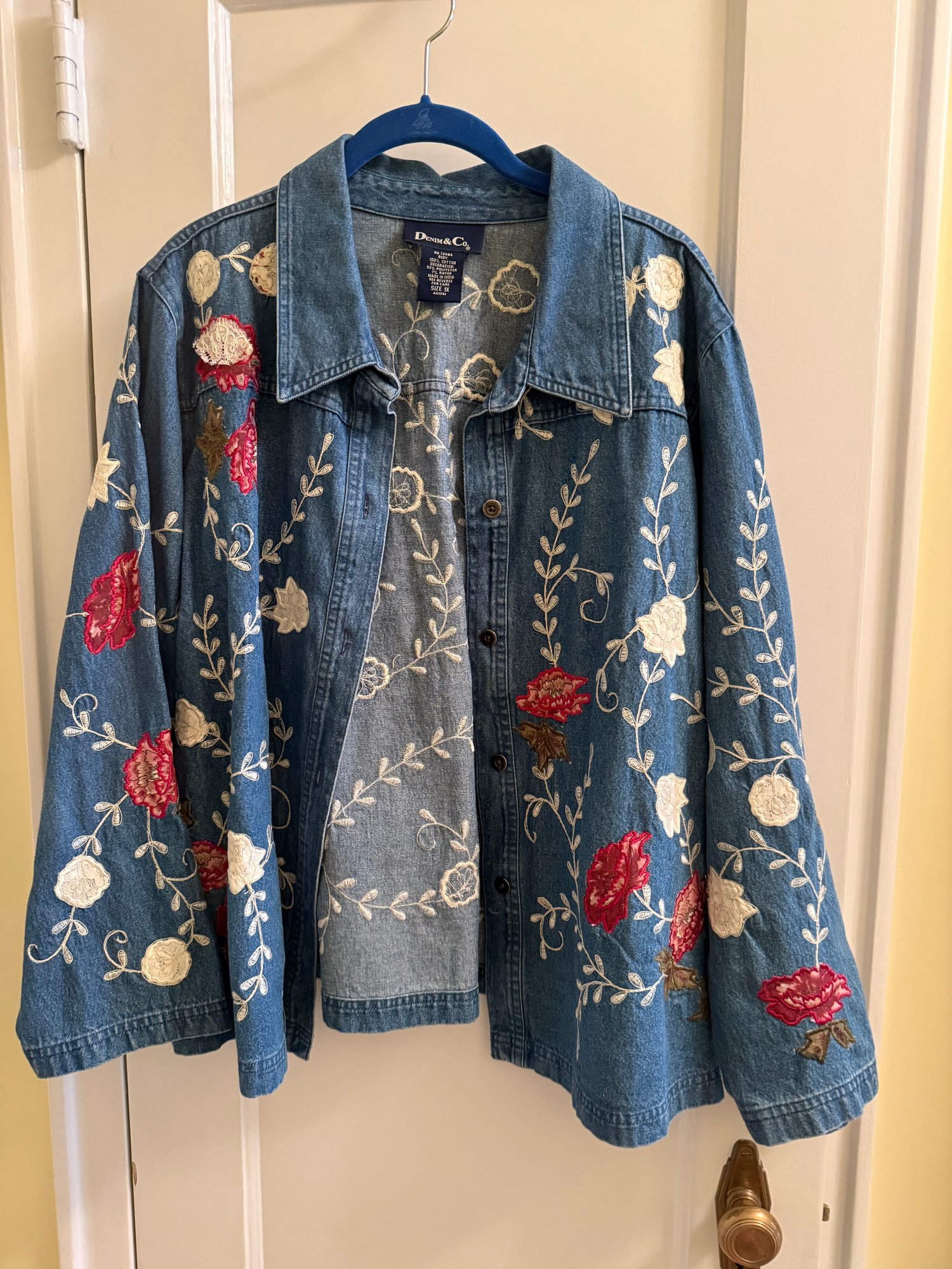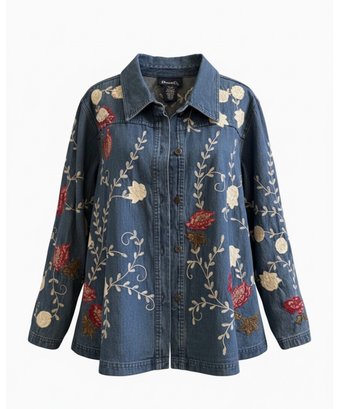 Denim And Co Size 1X Floral Embroidered Jean Jacket