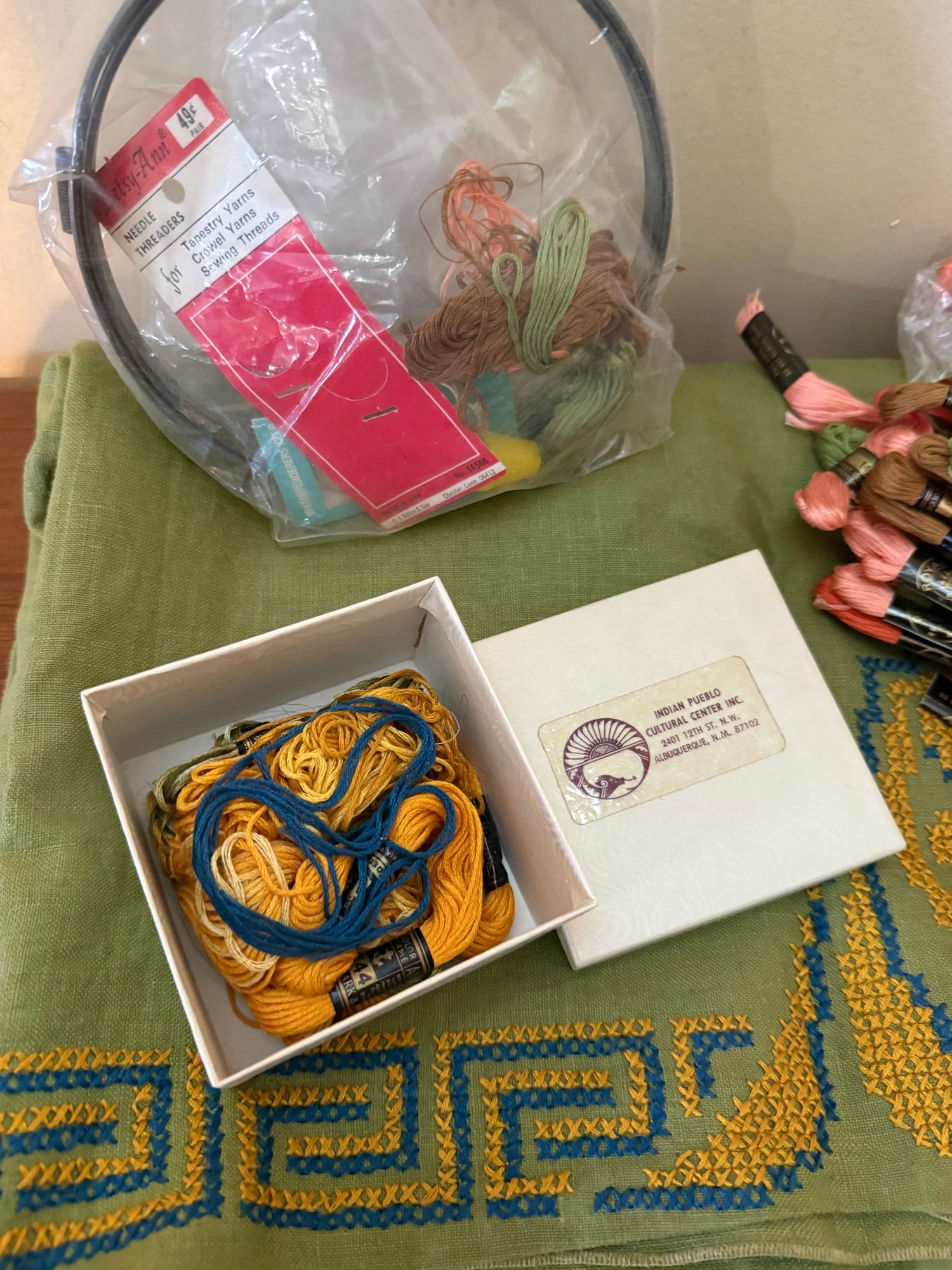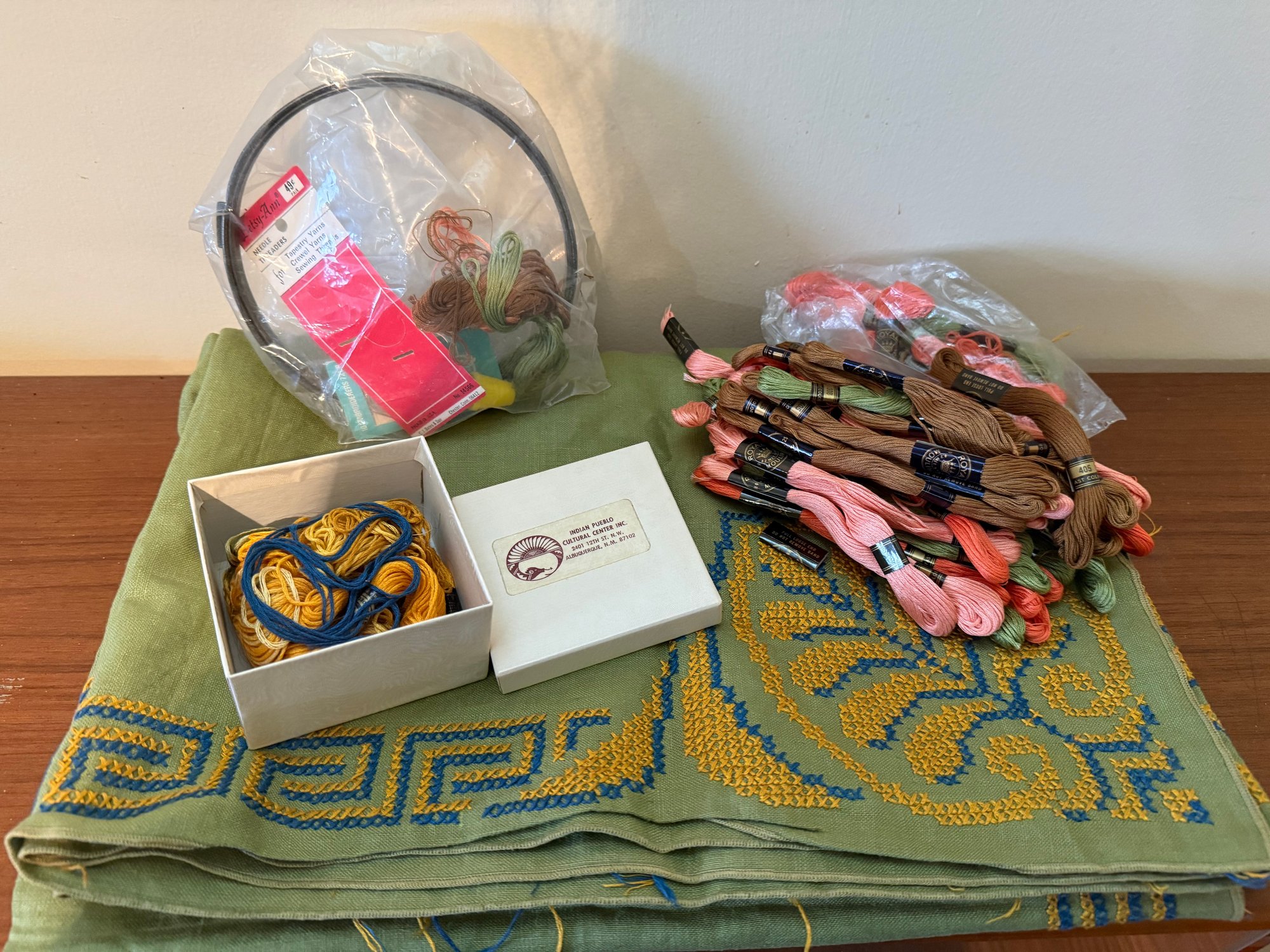 Indian Pueblo Cultural Center Yarn And Green Embroidered Cloth