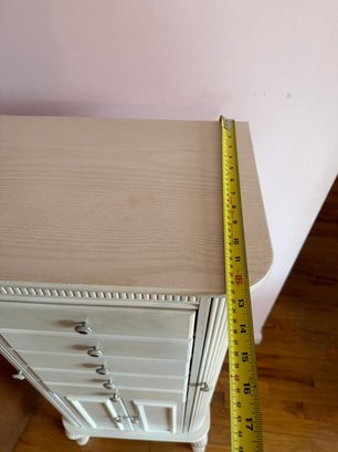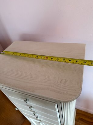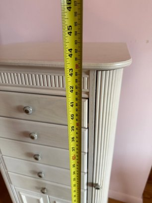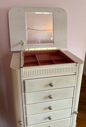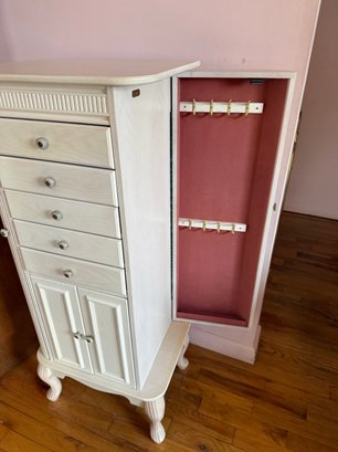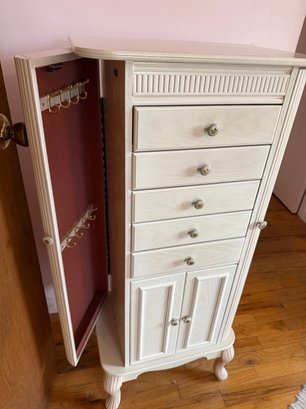 Distressed Off-white Floor-standing Jewelry Armoire With Drawers And Doors.