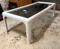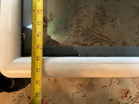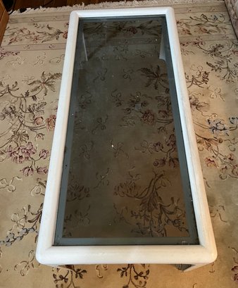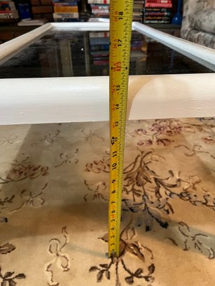 Distressed White Frame Coffee Table With Smokey Glass Top