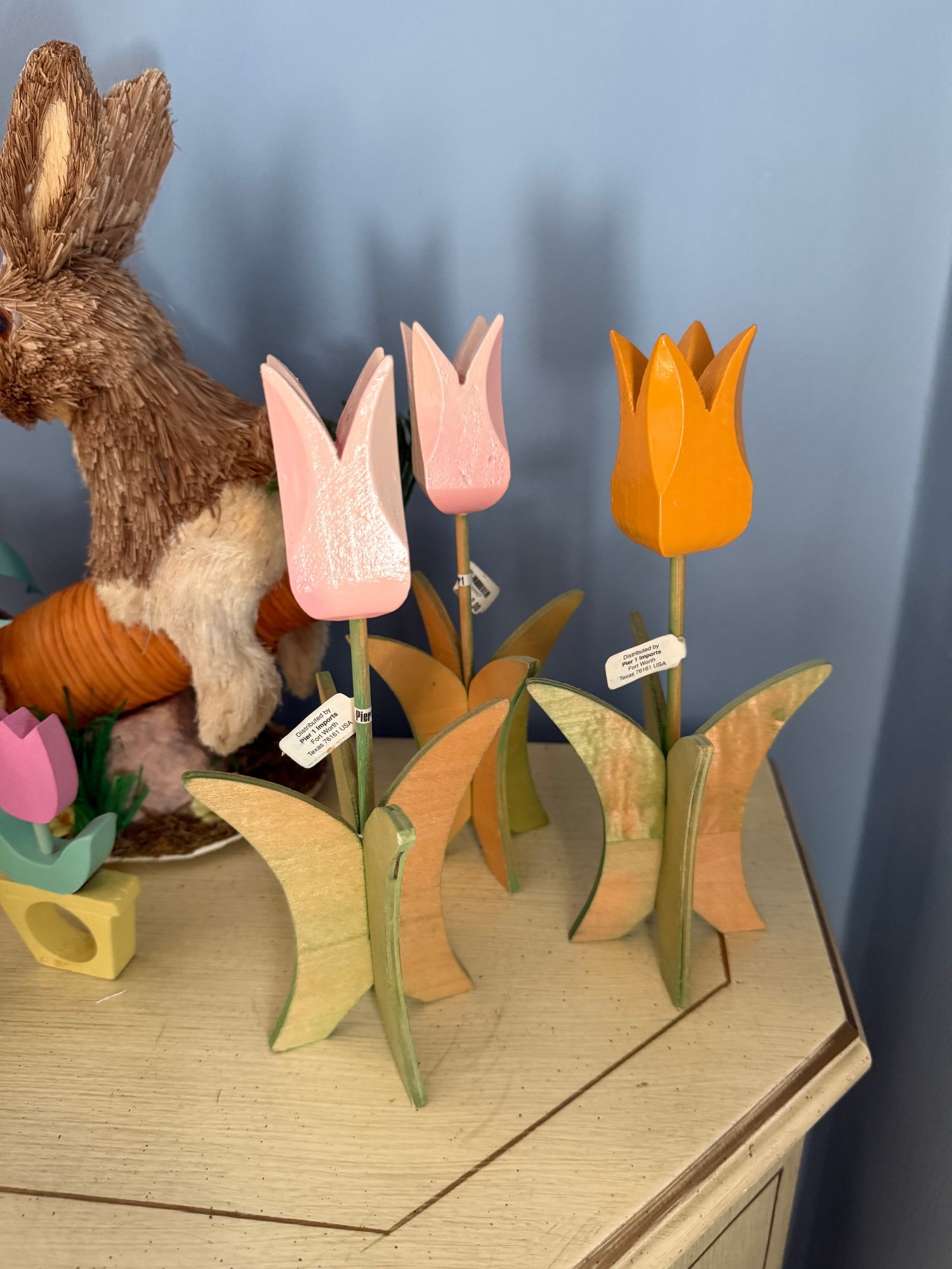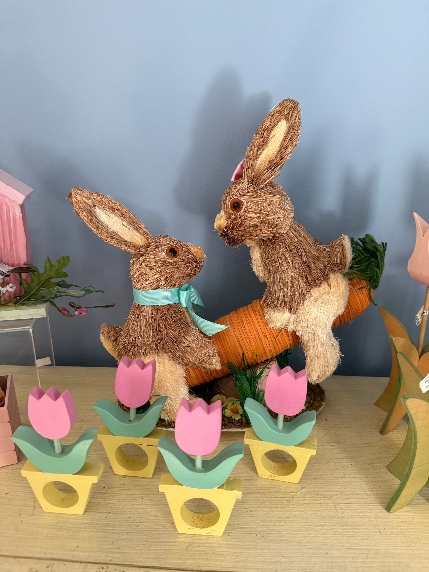 Easter Lot: Rattan Bunnies, Wood Tulips And More